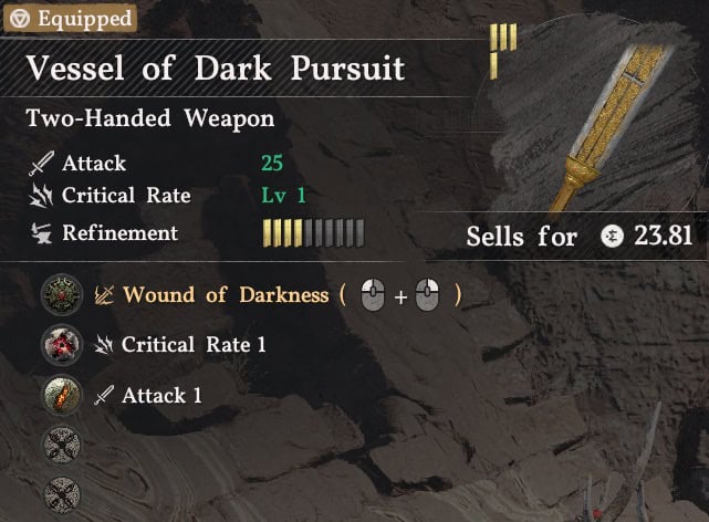 Defeating the Antumbra’s Sword grants you its sword, the Vessel of Dark Pursuit, and an Abyss Artifact.