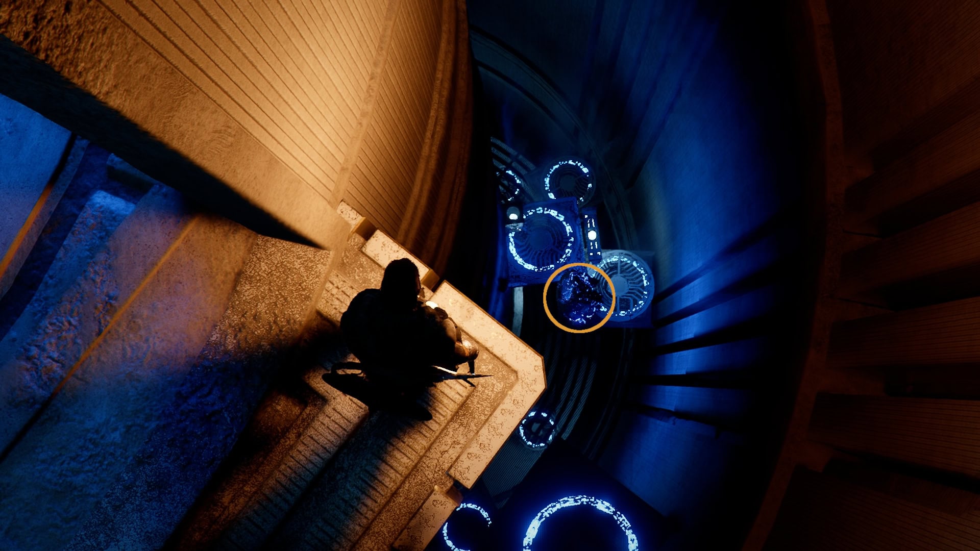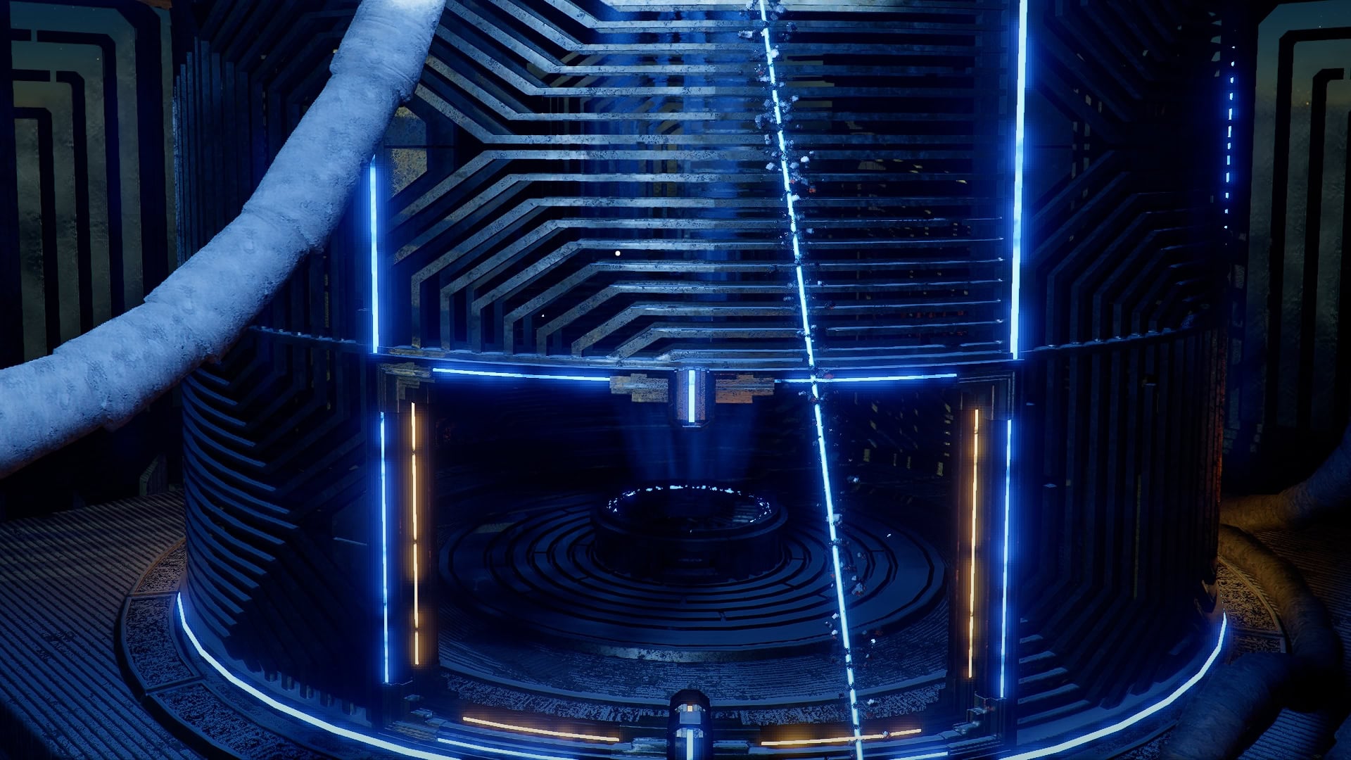 Ride these and the vents above towards the top. Pay careful attention to look for the extra Power Source needed for the puzzle ahead. Descend to grab it if you need to.