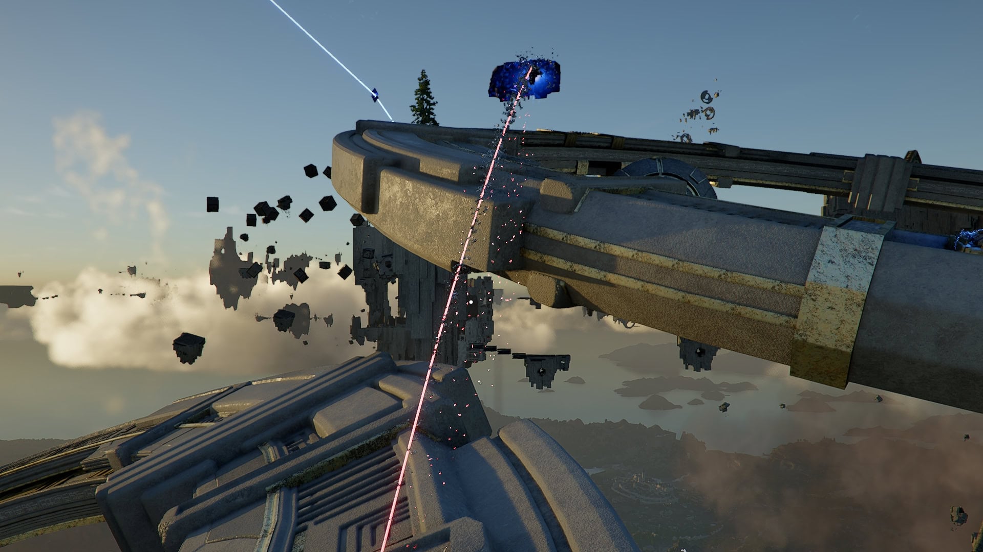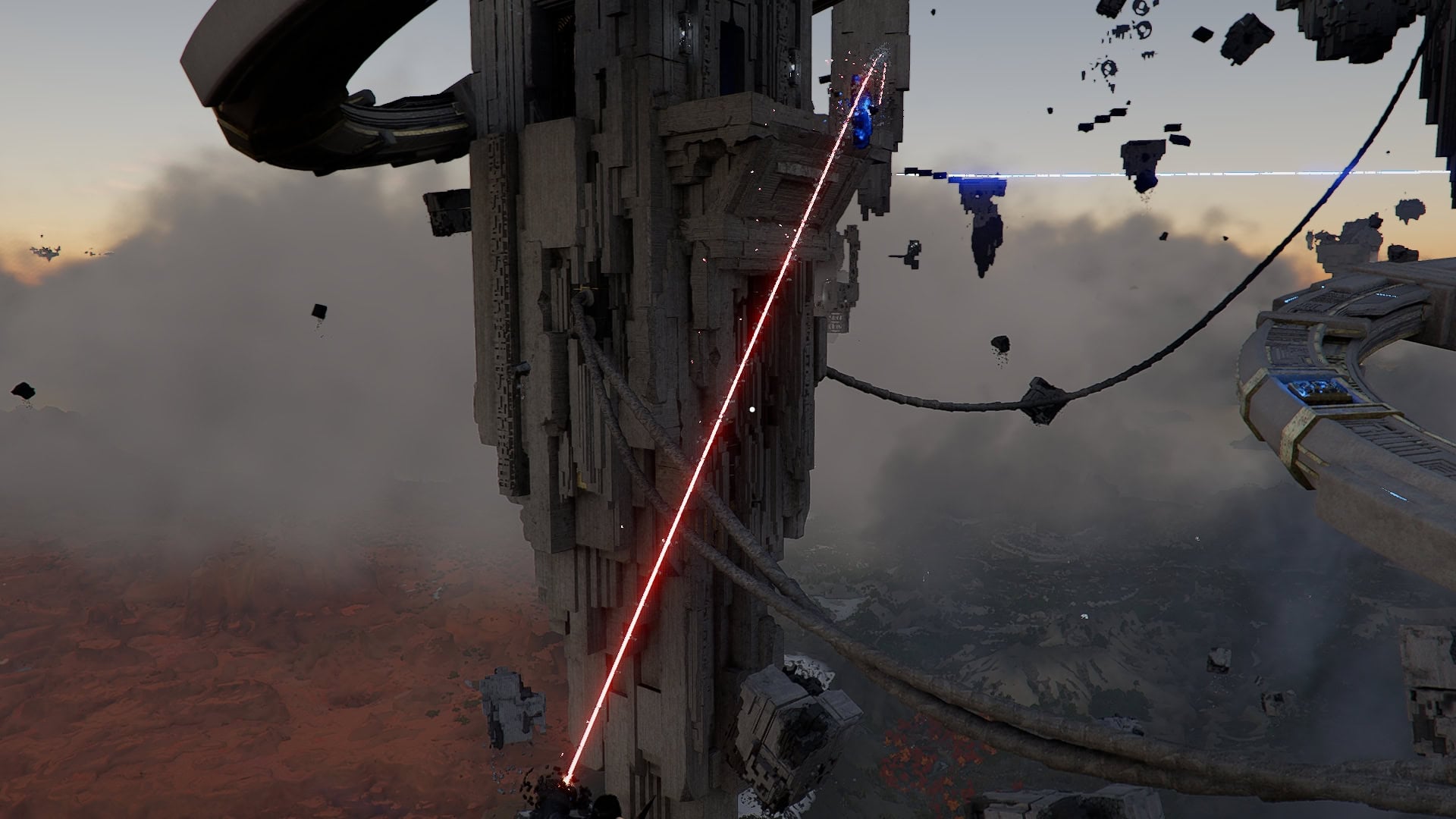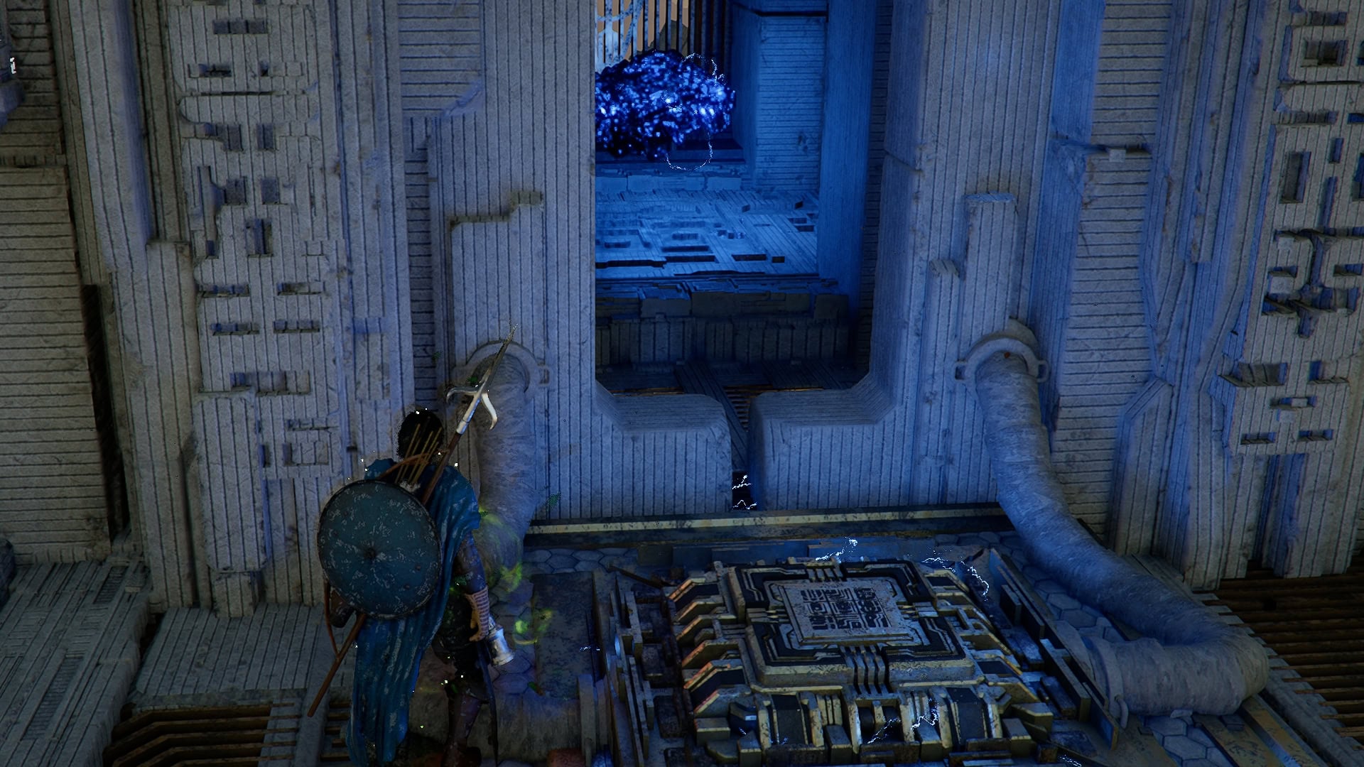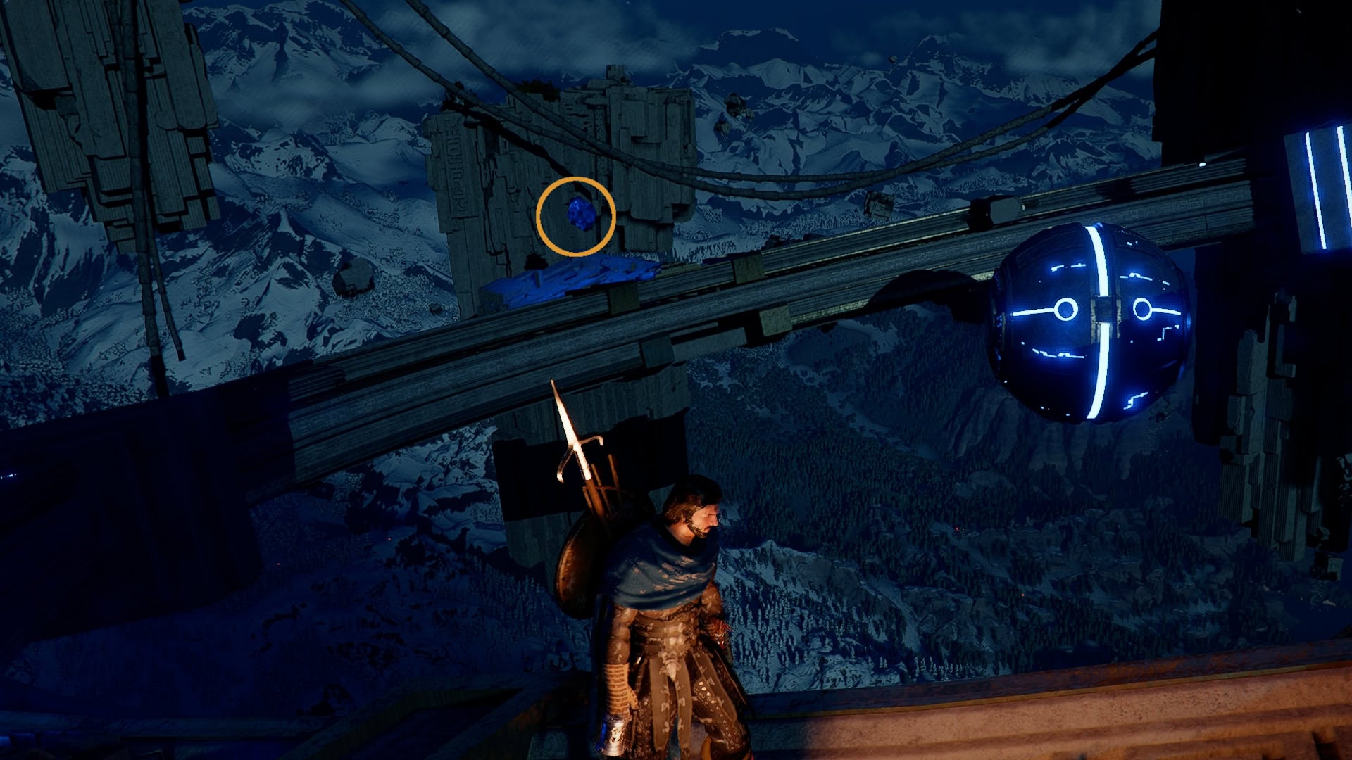 From the Nexus, if you move forward and look over the ledge here, you’ll see a Power Source in need of socketing.