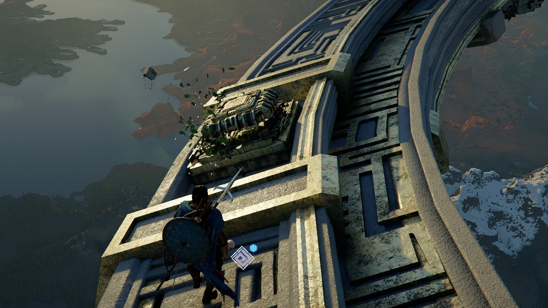 To do so, head back over to the Northern platform where the second Power Source was located, then glide and climb onto the small platform just behind that.