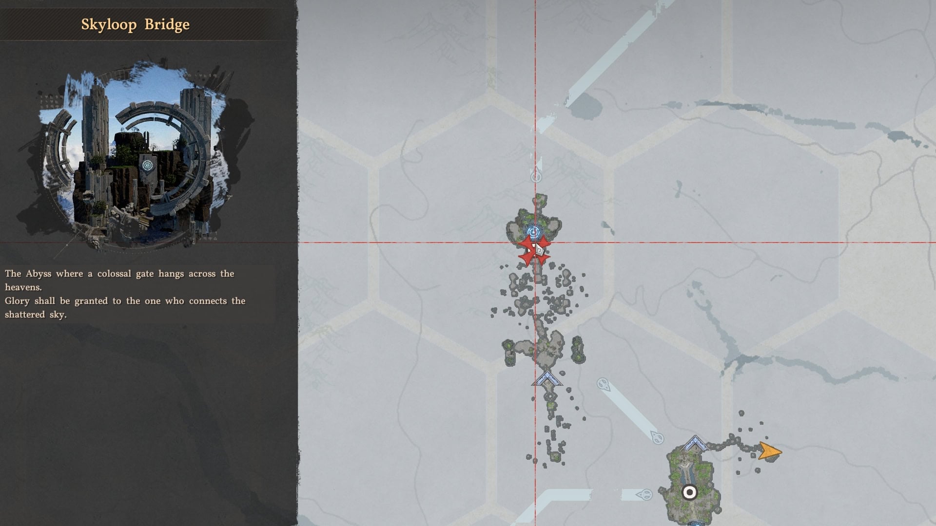 The Skyloop Bridge is the last in a series of Abyss Puzzles starting from the Spire of Ringing Truth. This Spire happens to be guarded by a powerful boss, so be prepared if you need to start there.