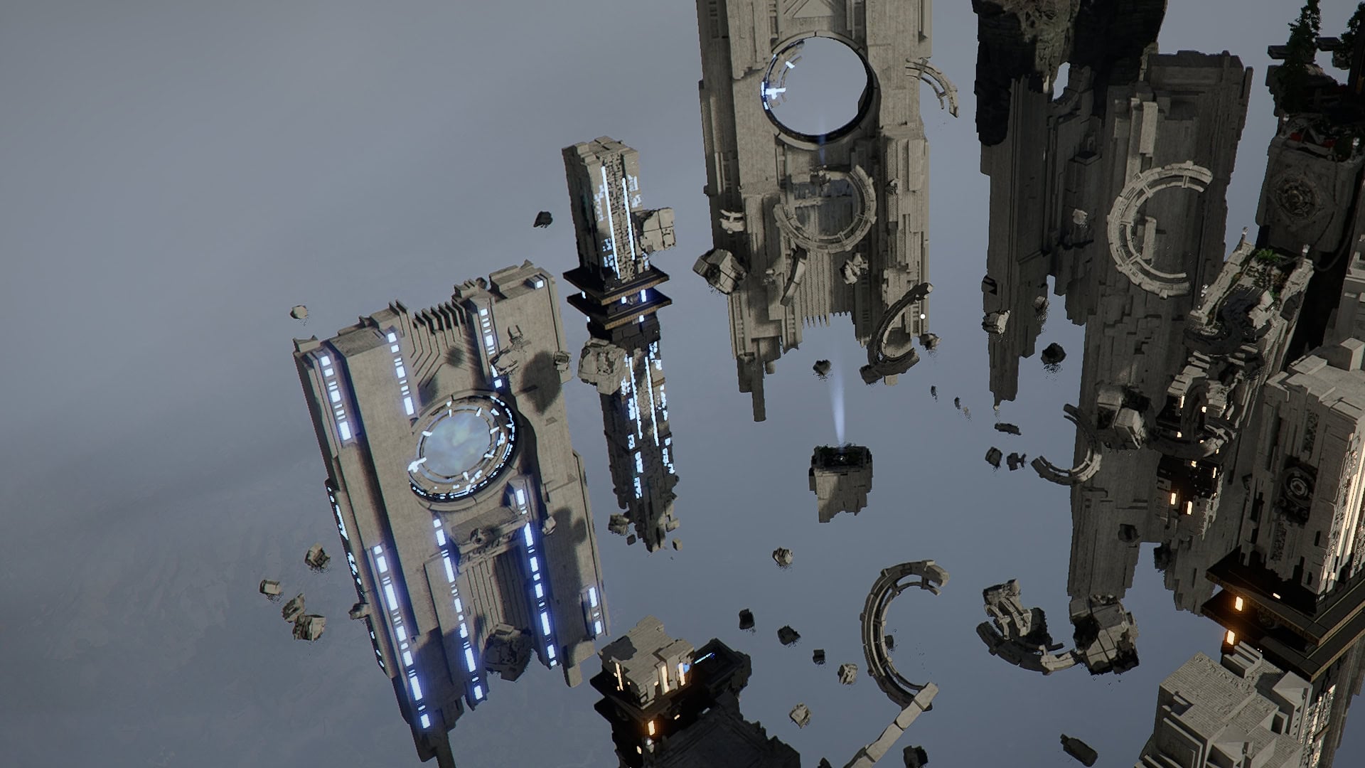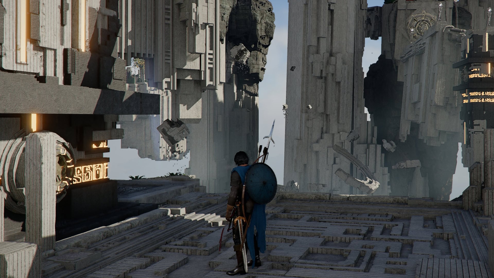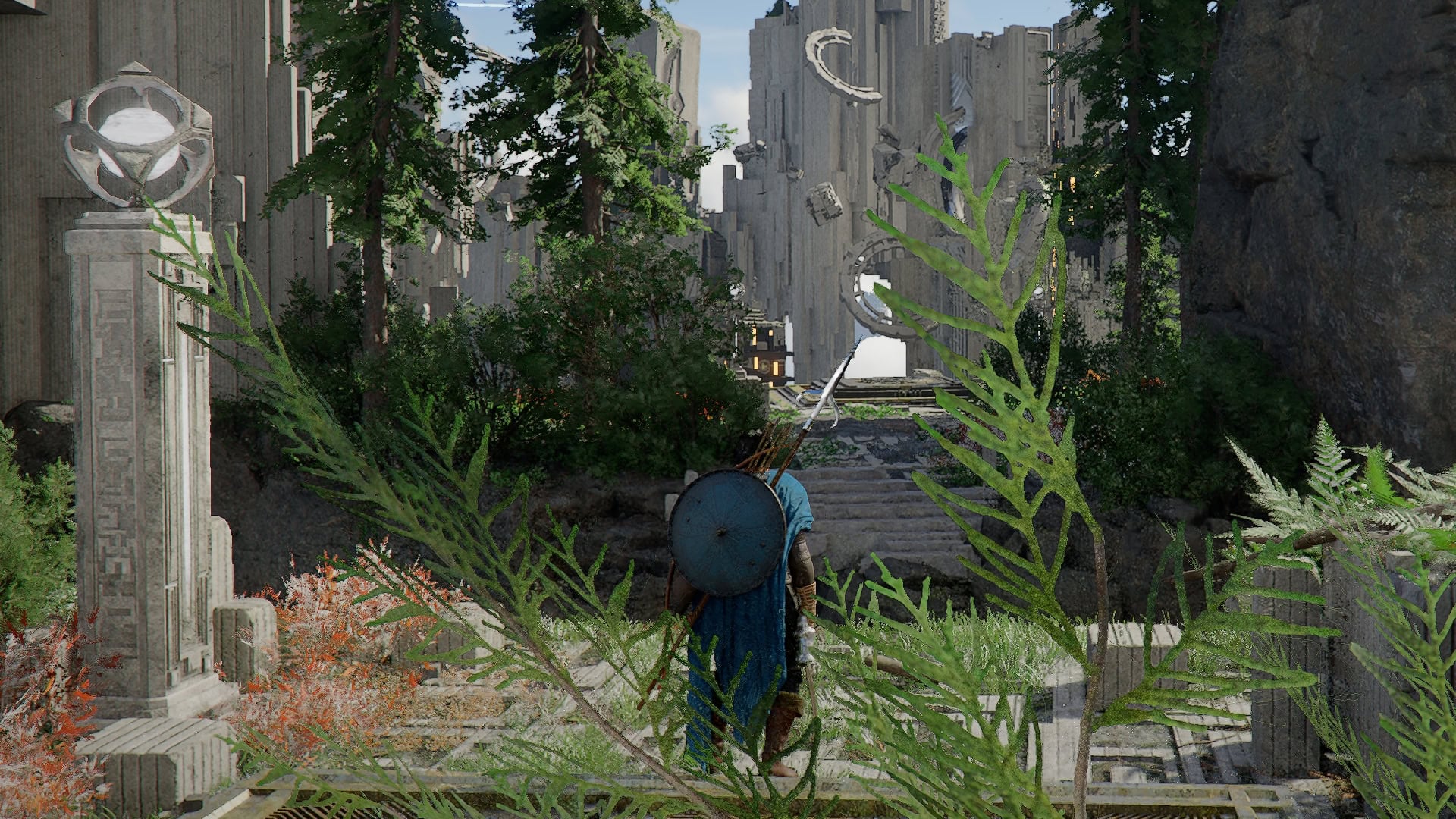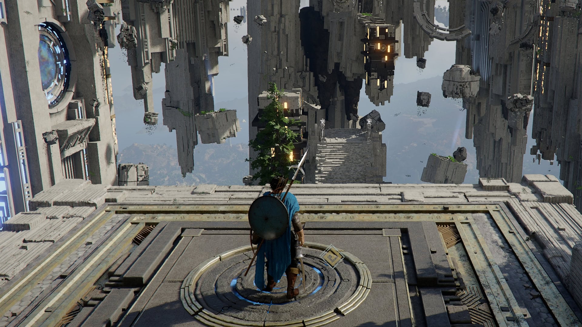 From this new position, turn towards the higher structure and climb up. You’ll notice the ring up here is missing pieces.