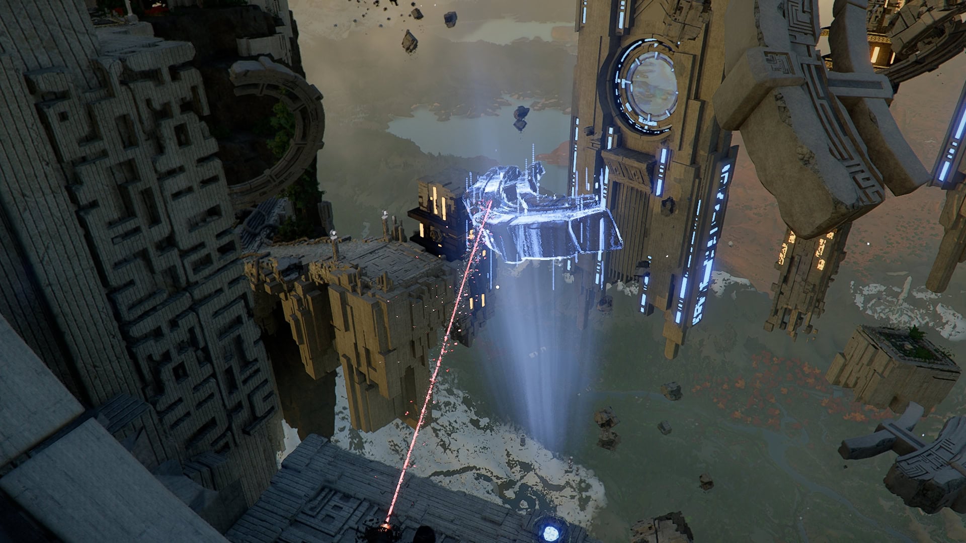 Hop down to the Platform and use the travel setup to move to the Western side now. You’ll be fixing both structures here.