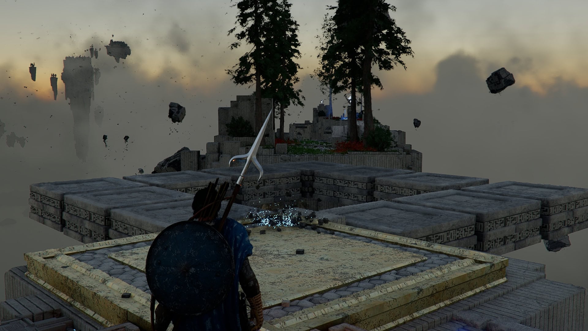 Head over using the travel setup to move to the last pillar and climb up to press it with Force Palm.