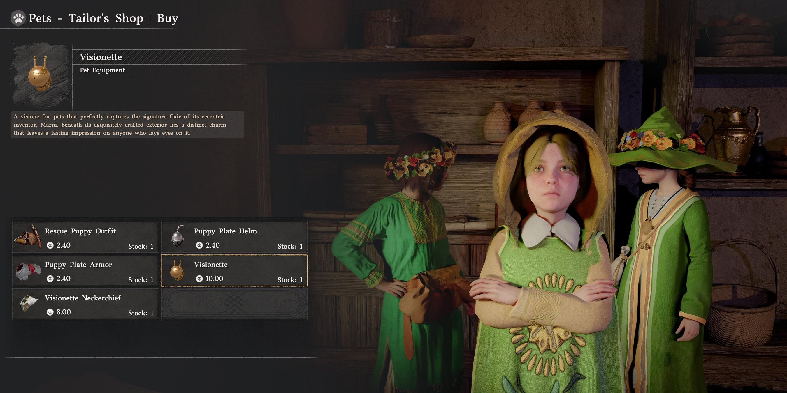 There’s a vendor in Pororin where you can buy some adorable armor for your dogs and cats.