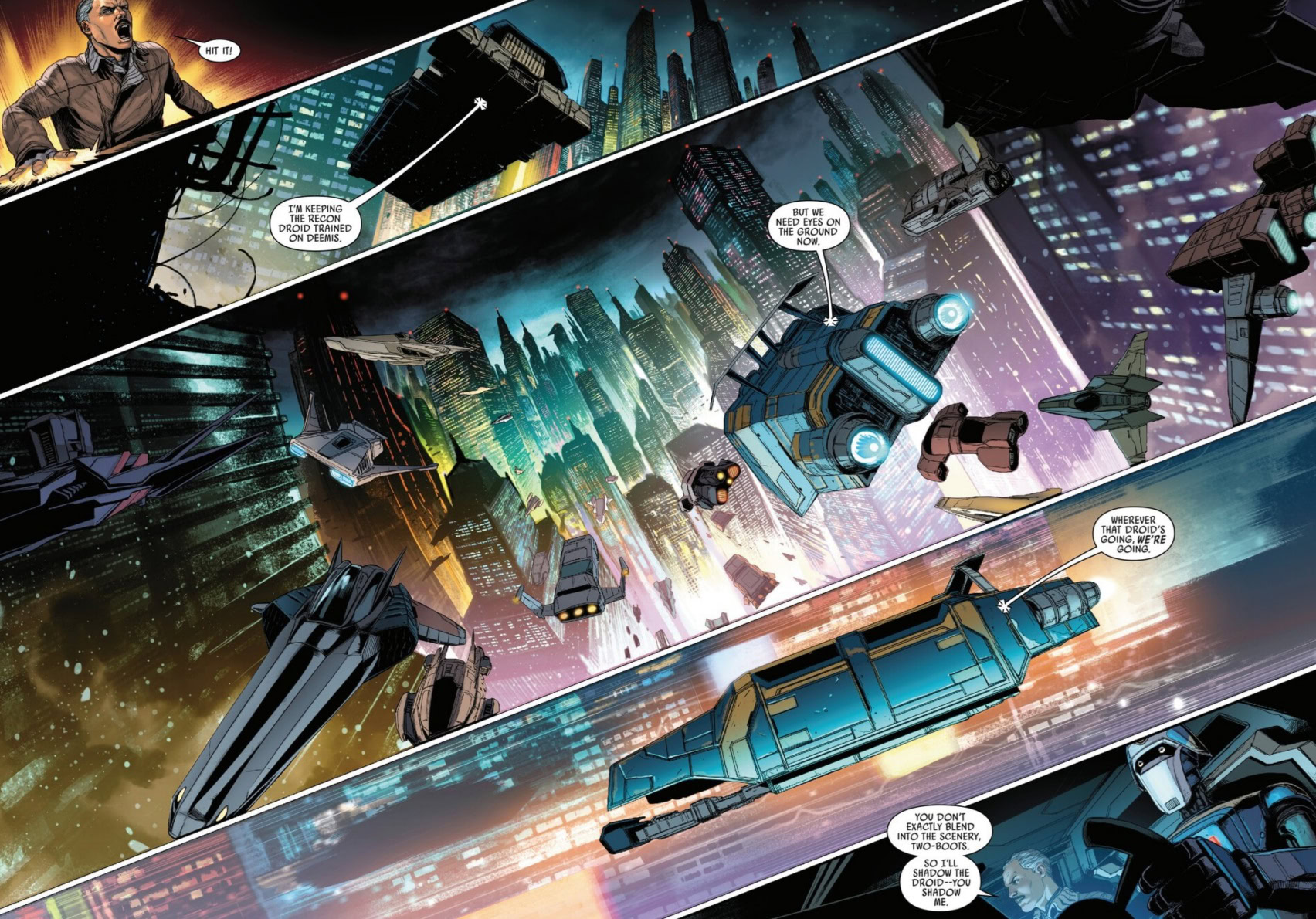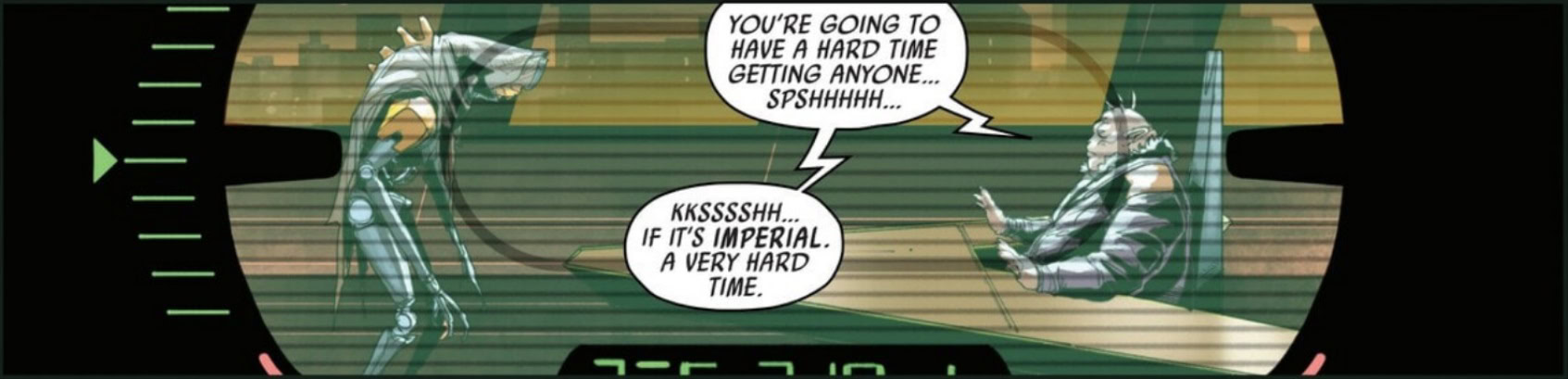 I really like that this issue briefly mentions what could happen in the underworld when one crime lord gets to overpower the rest. As bizarre as it is, having multiple of them keeps everything in balance and contained. At least enough for the Galactic Empire not to intervene.