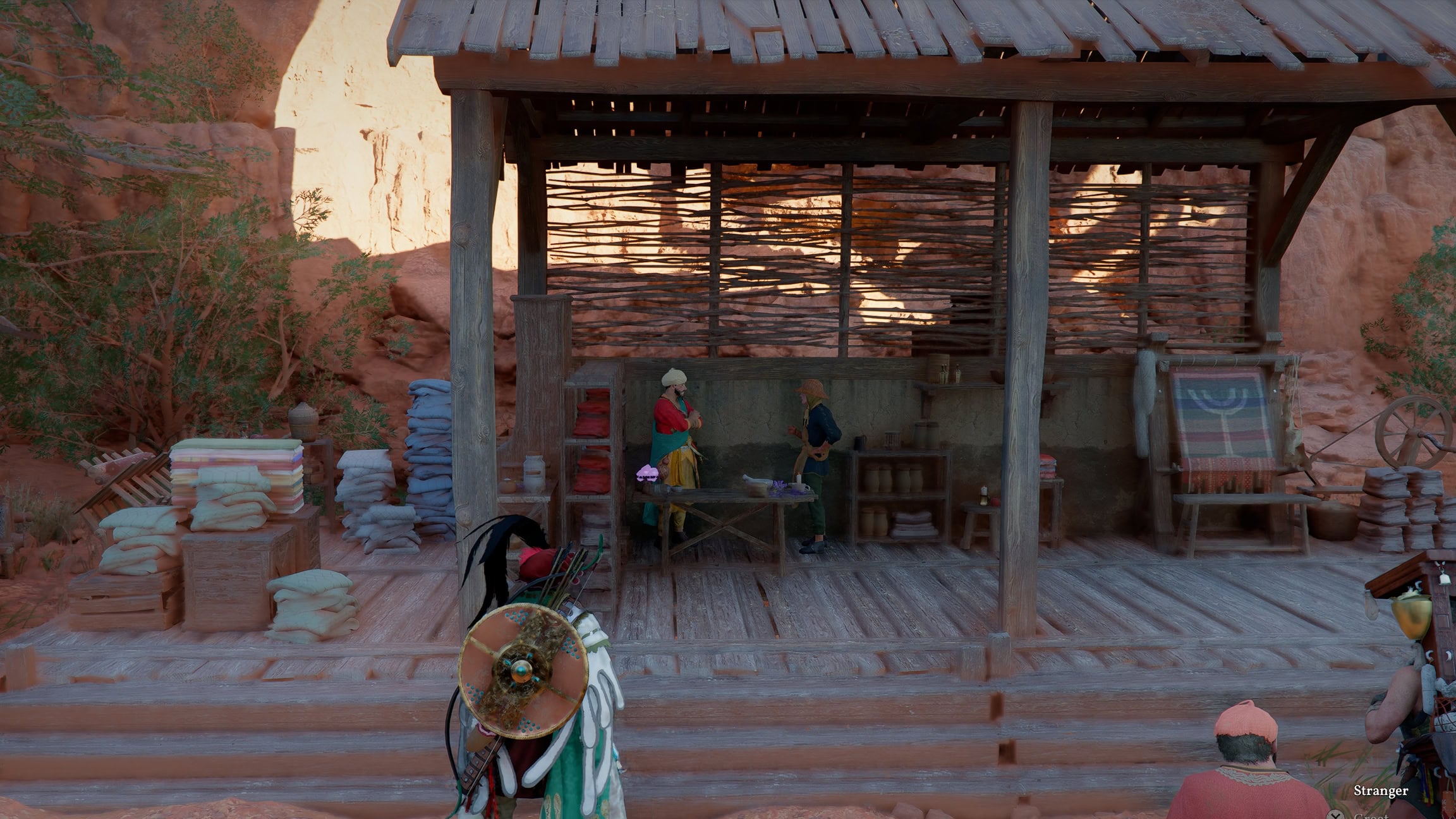 Each NPC wandering around has a little nameplate over their head when you walk up to them. It says their actual name if they’re worthy of having one, or it might say their profession, or usually it just says Stranger. We care about the NPCs that are called Dyer or Expert Dyer.