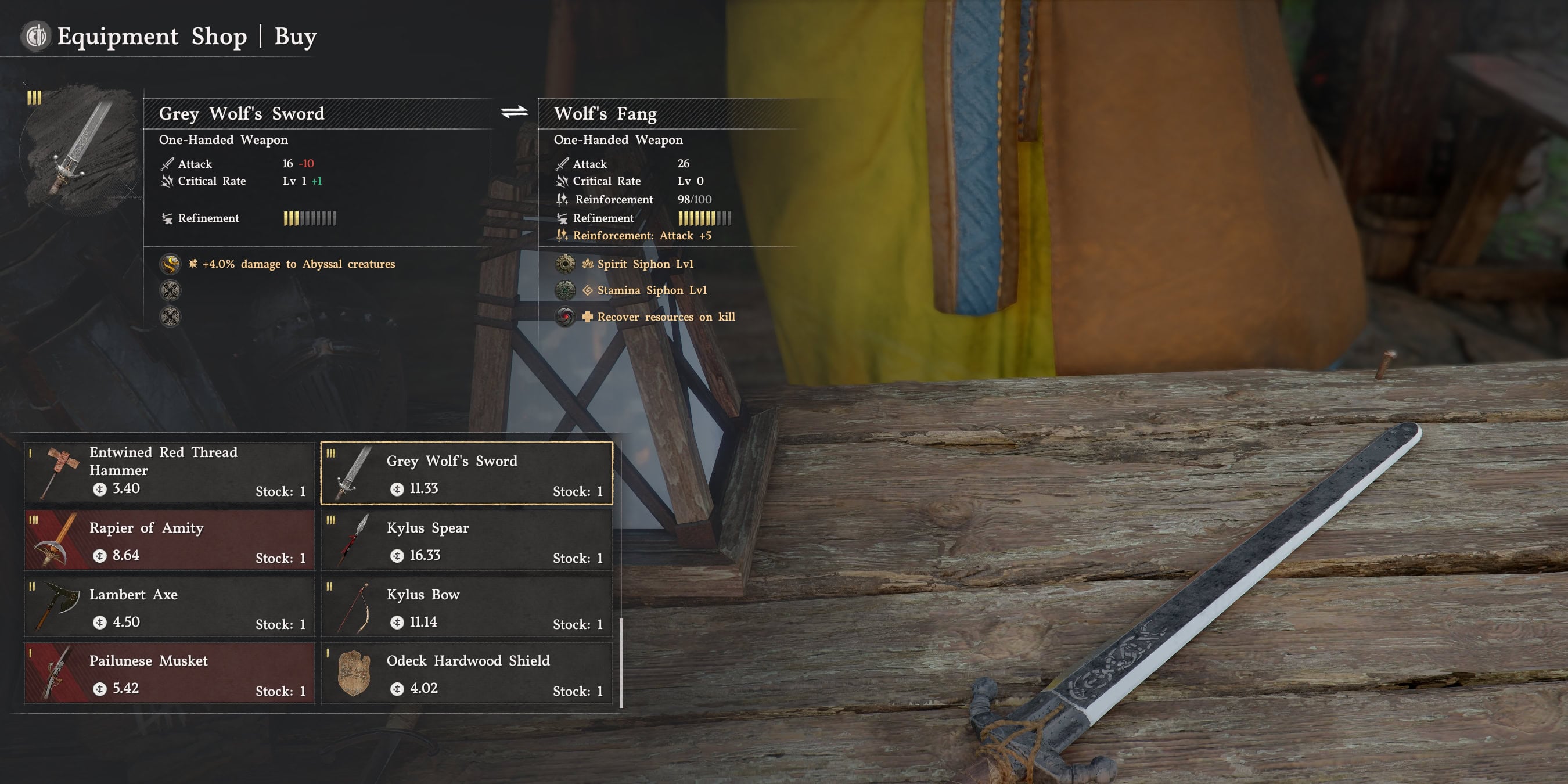 Grey Wolf’s Sword Stats
