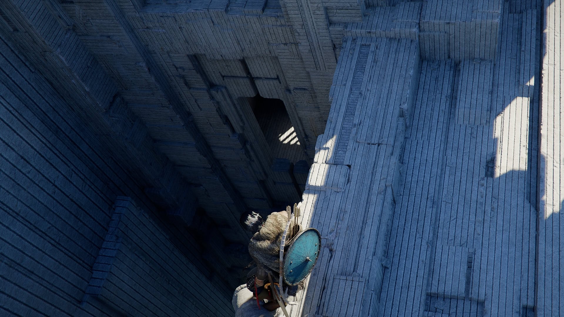 When you reach the top of this structure, look down the hole in the middle to find a small gap in the wall below.