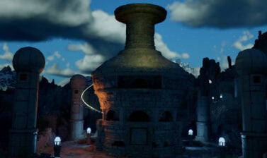 Jump back down to the base of the structure and use an Aerial Force Palm to activate the Abyss Artifact. The Skybridge opens up a teleporter in front of you that will take you to the platforming section of the Skybridge.