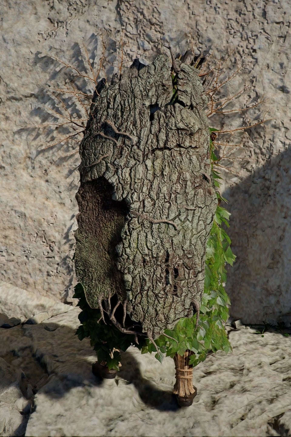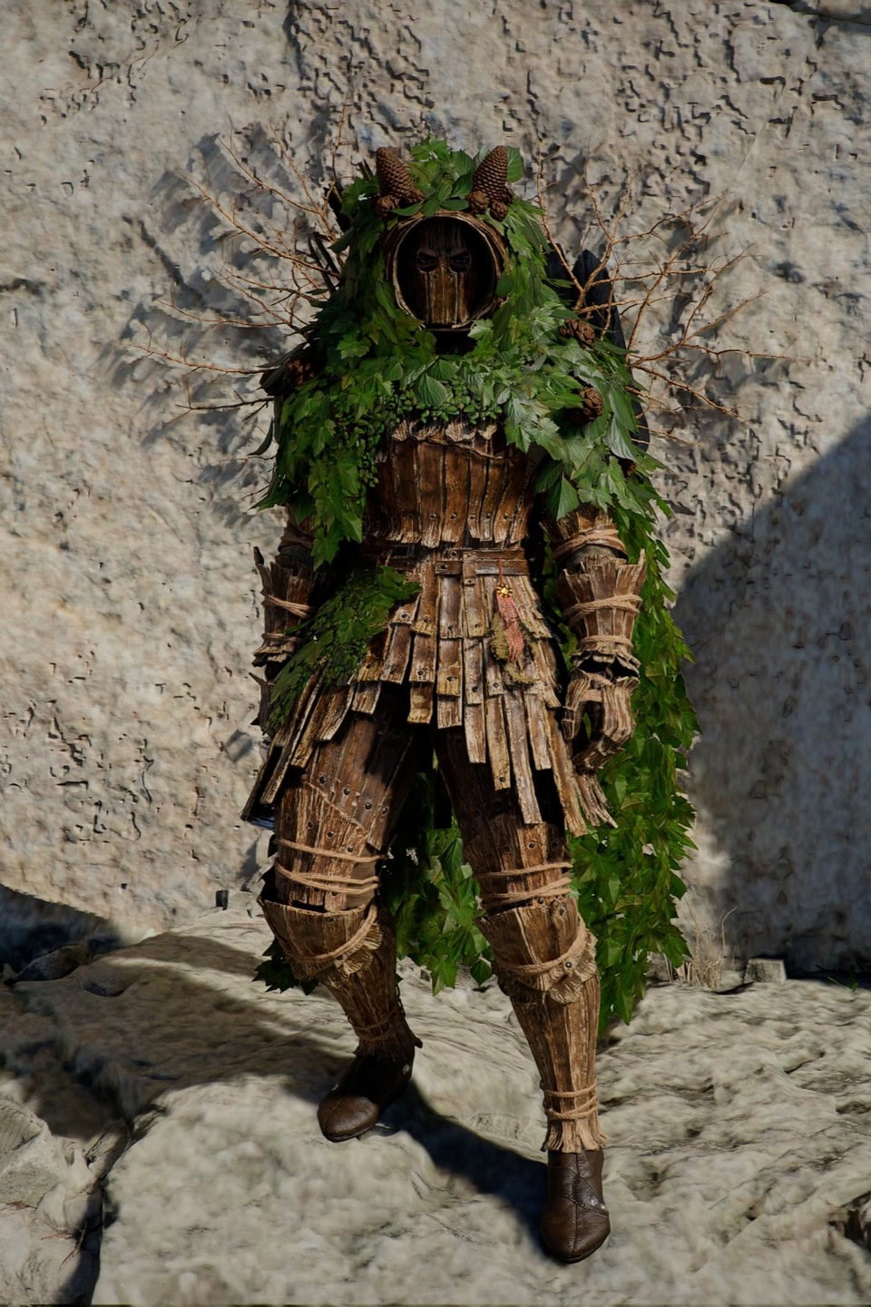The shield does not share the name of the rest of the set, but it’s just a giant chunk of tree bark that fits so perfectly you can’t not wear it with the set.