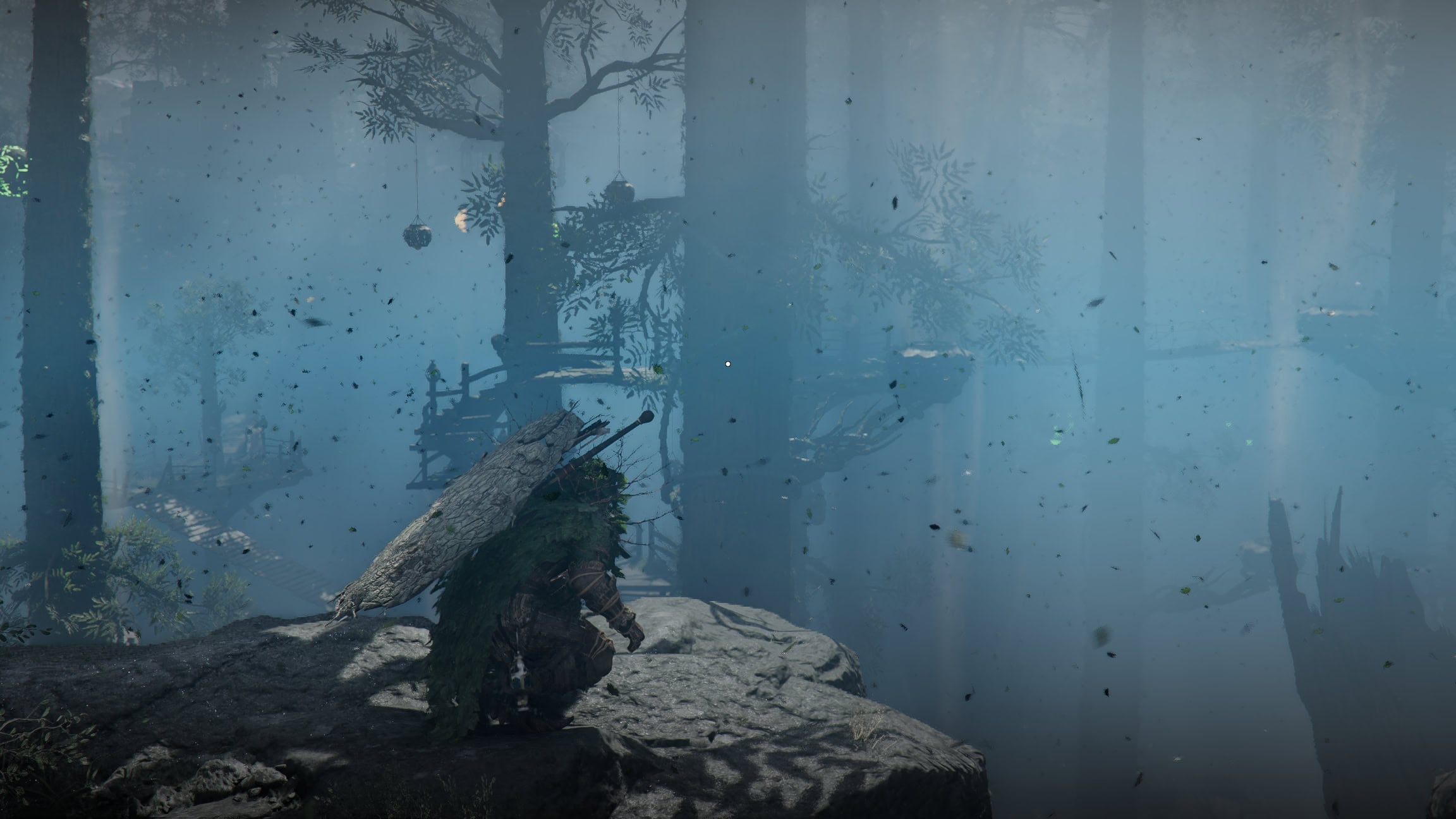 The Shadowleaf set is obtainable by all players in Crimson Desert and features wooden planks tied together with twine and covered with a cloak made of leaves and topped with decorative pinecones.