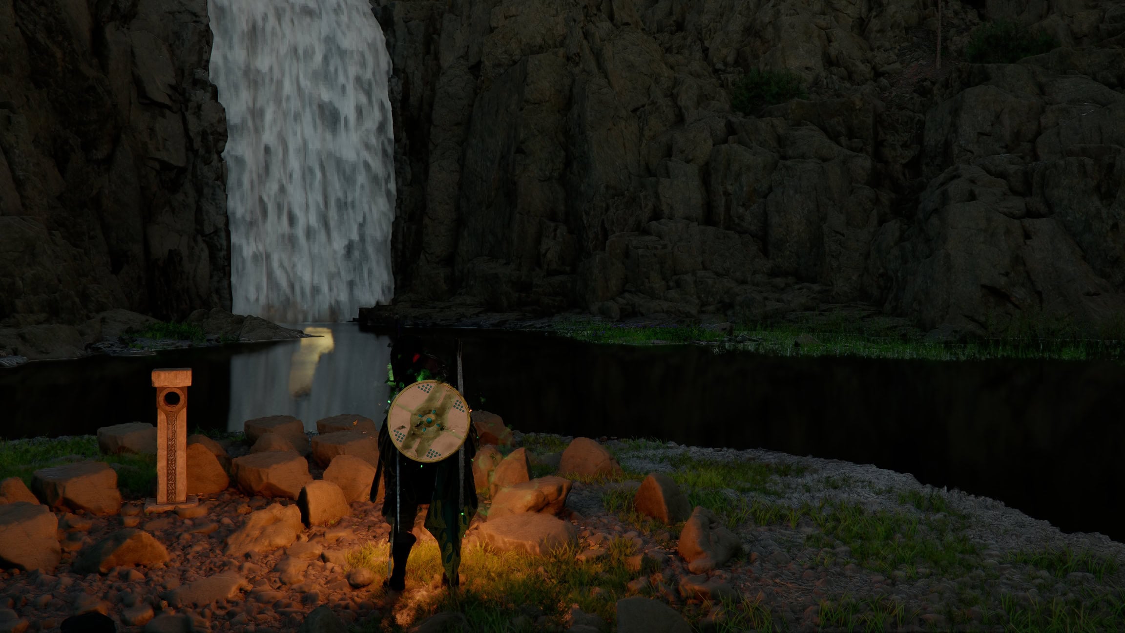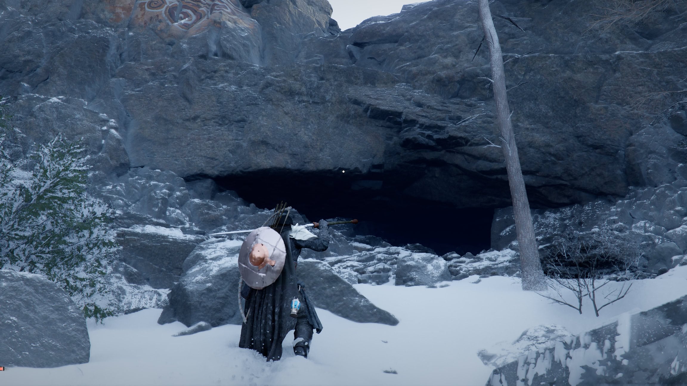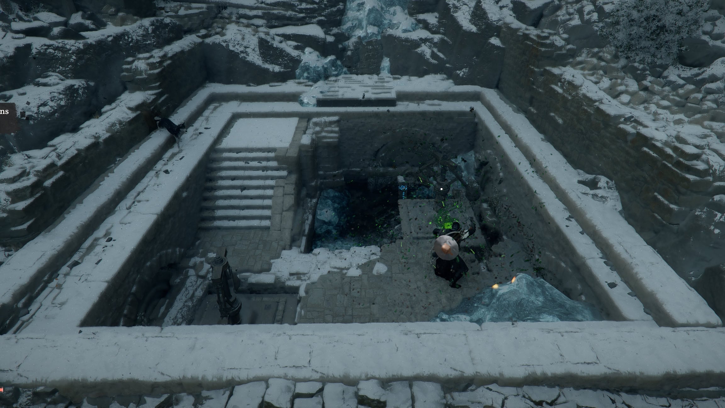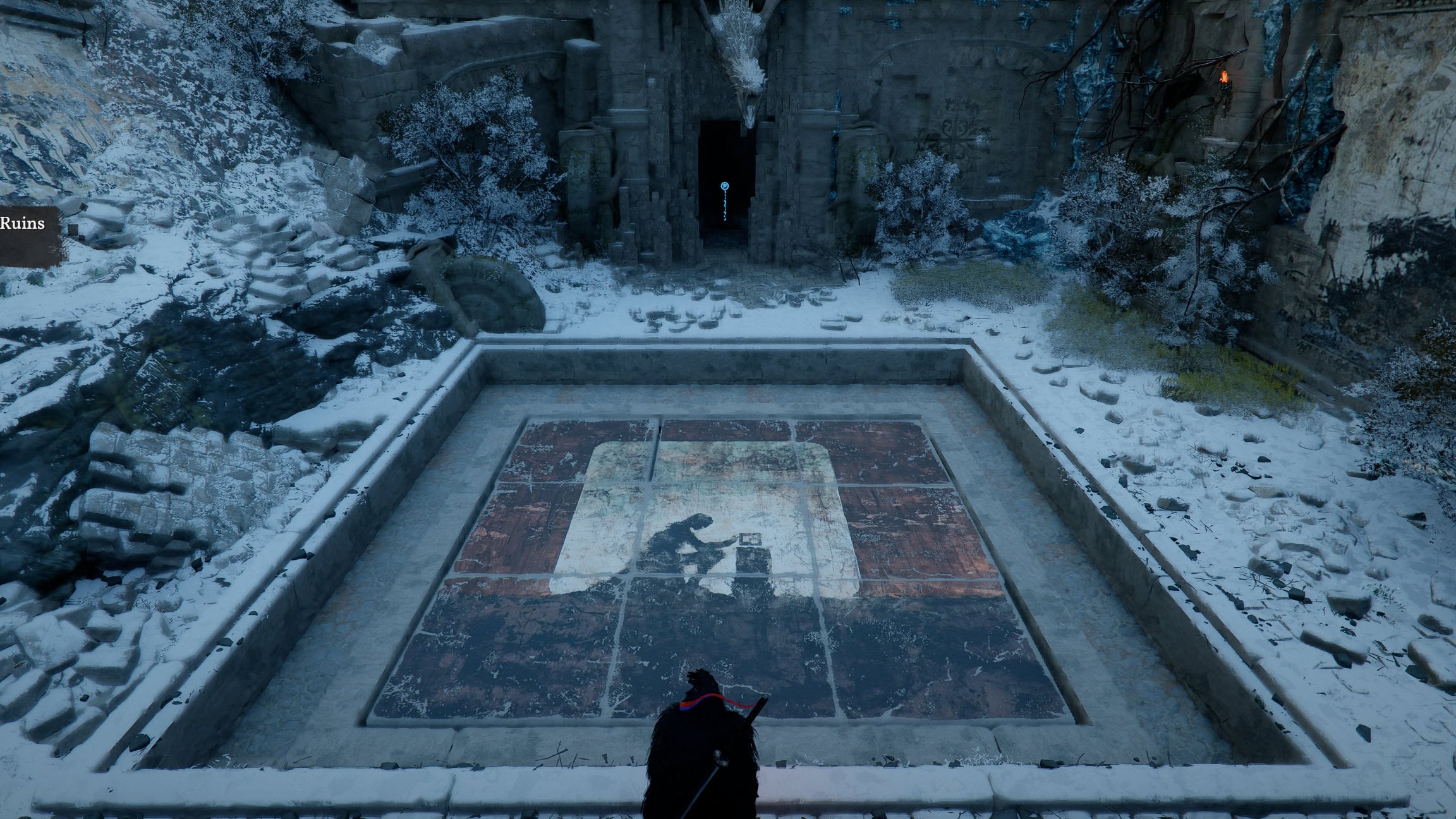 To solve it, shatter the ice above the puzzle with Force Palm, then do the same with the small patch of ice in the empty pool to drain the water. You can move the pieces around, so they match the picture by pushing them or stabbing your sword into them.