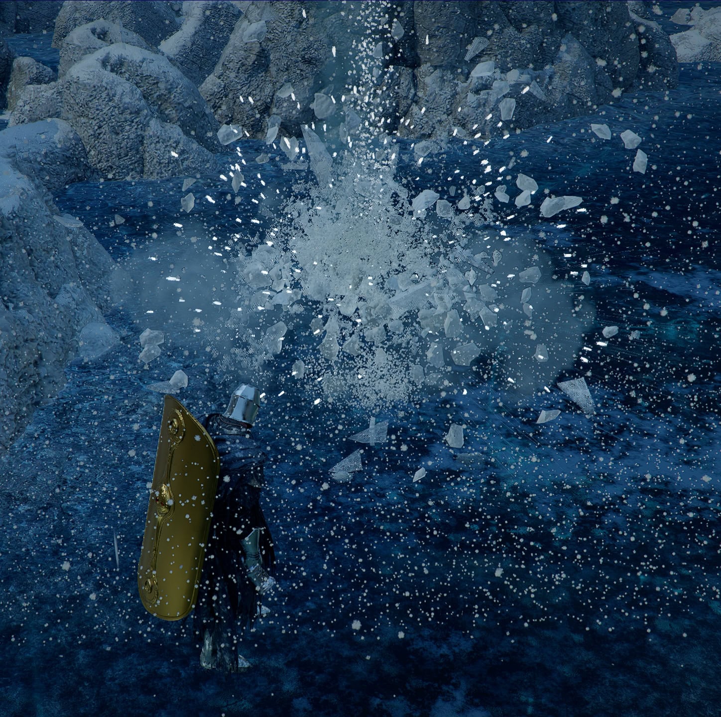 This area is incredibly dangerous as large chunks of ice will fall from the sky. Watch the ground around you for spinning white circles, this is where the ice chunks will land.