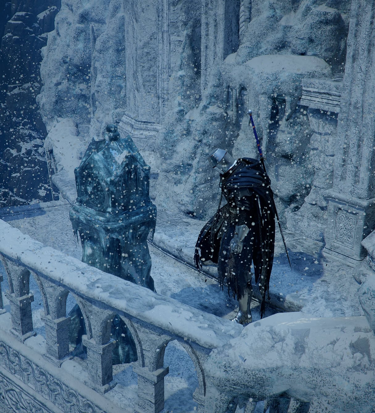 Once you reach the dead end on the exterior stairs, go inside through the window to find the final stone lantern. Lighting this will get you the Frostcursed Plate Boots and activate a lift leading to the Abyss Gate.
