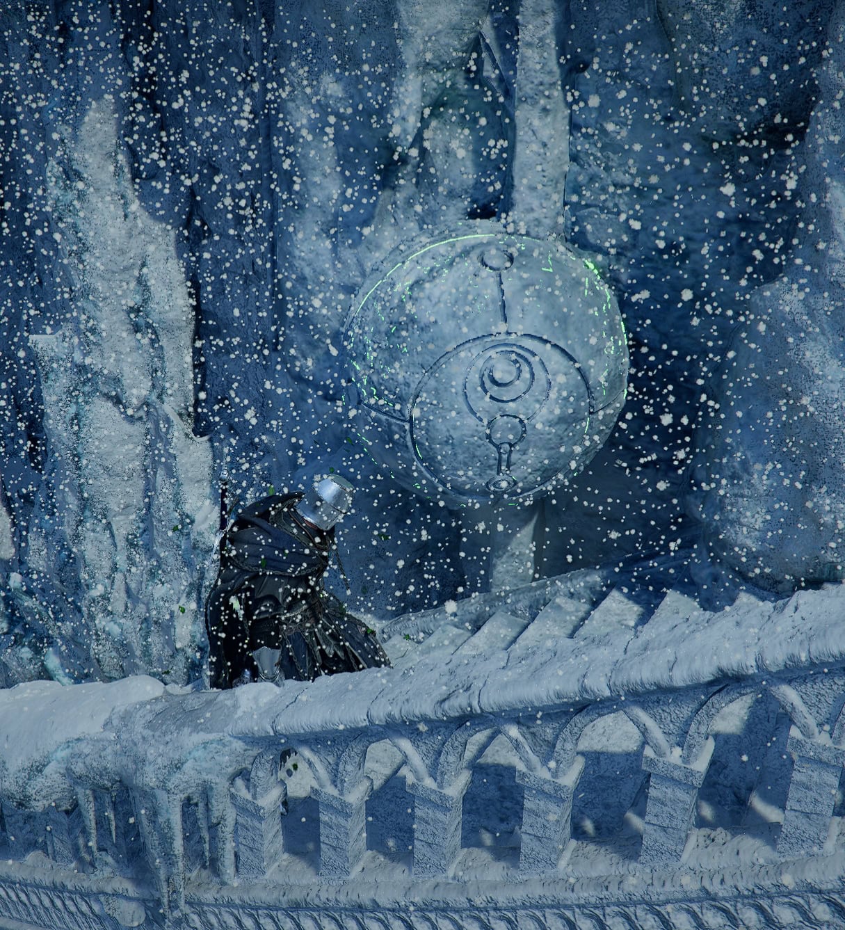 The first one will be frozen inside the east side of the spire on ground level. Use Axiom Force to pull it out and avoid falling ice chunks as you do so.