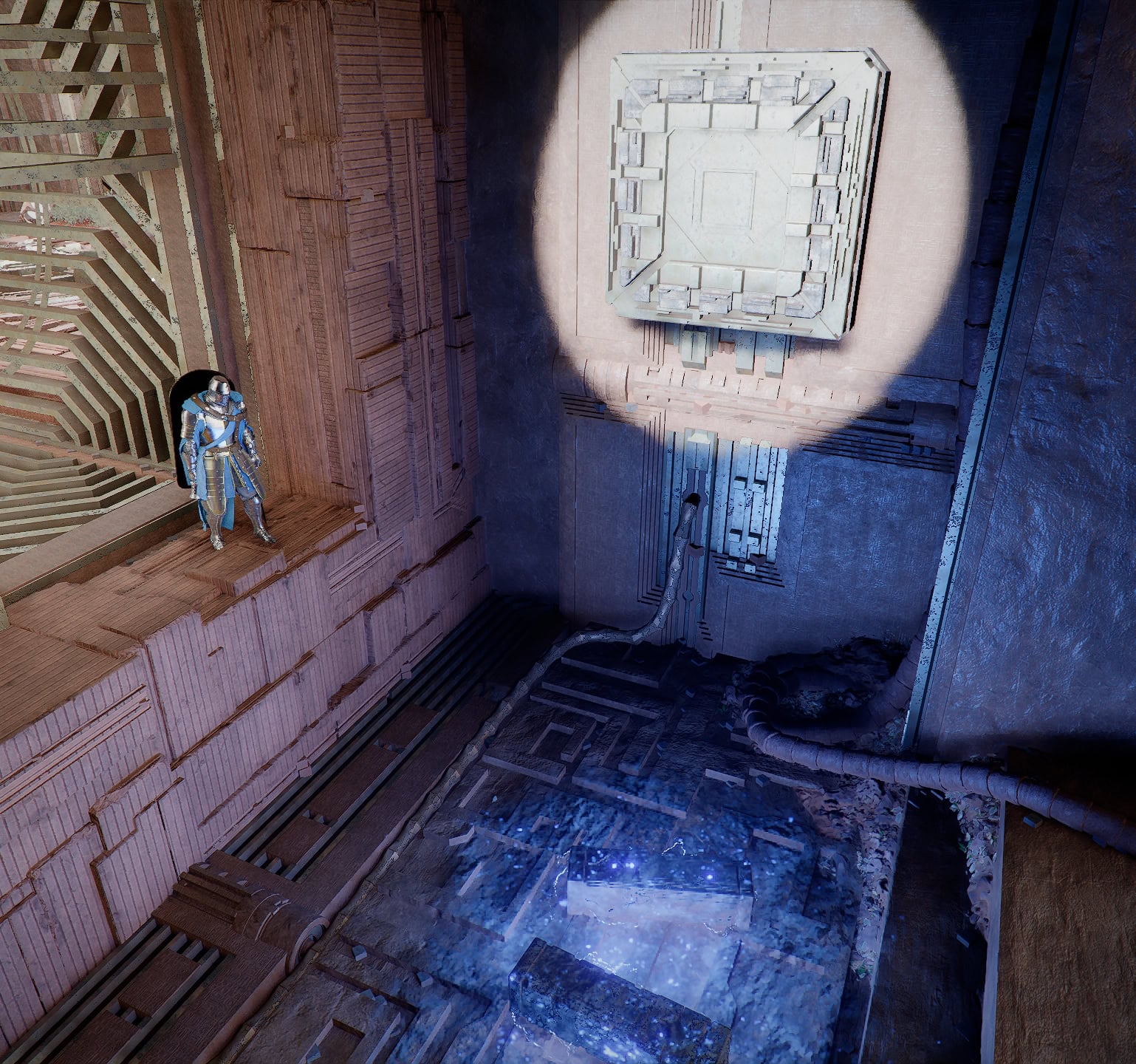 Activate the large switch the powered up and get the Abyss Artifact. Return to the Abyss Nexus and go east to find the Skybridge. The teleporter will take you to the next puzzle, Desert Fragment.