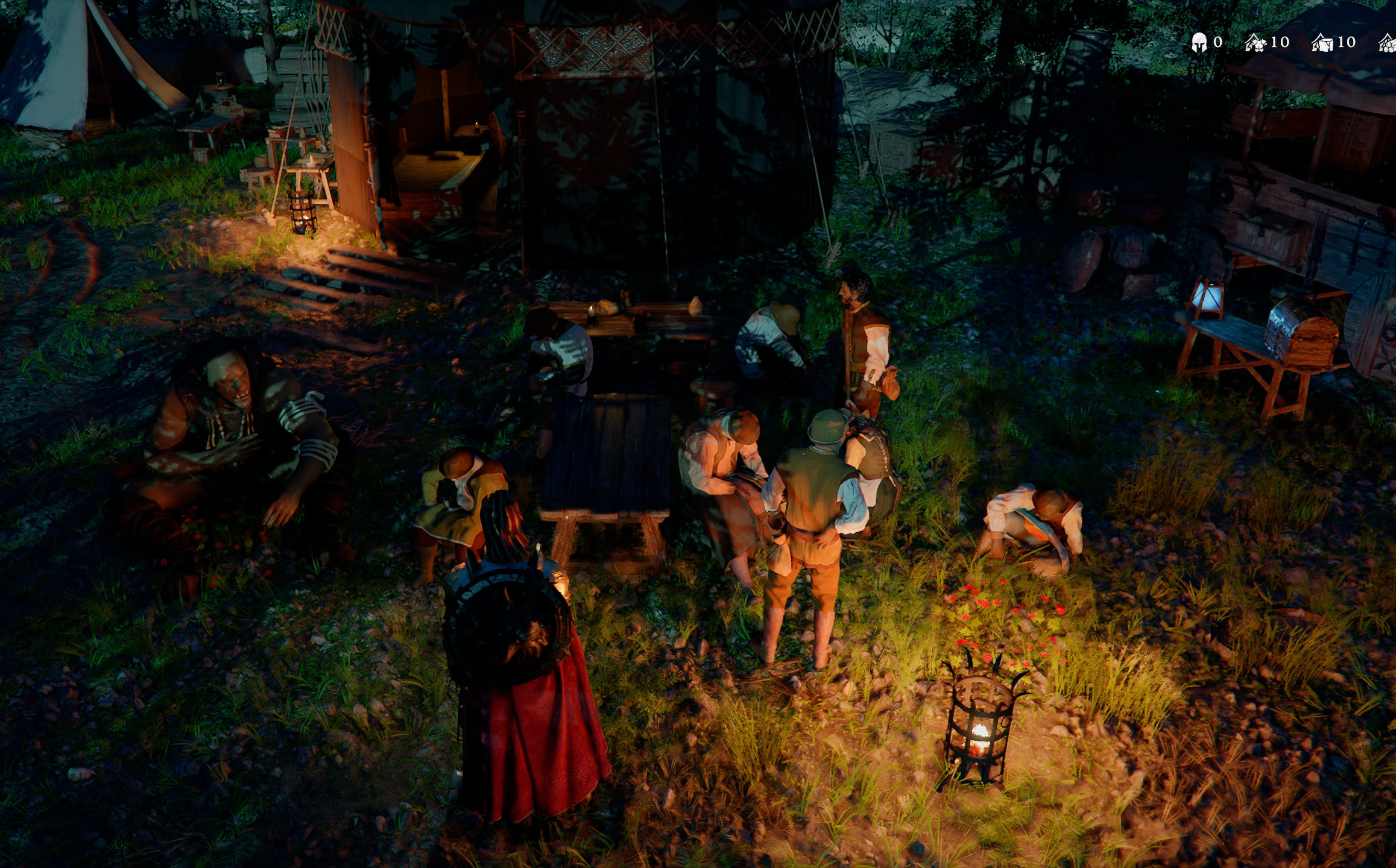 After reaching the Camp and speaking with Barden, you’ll complete a handful of tasks to clean up, set up, and organize the small camp you have. Afterwards, Kliff will cook a meal to share with everyone who helped with the camp.