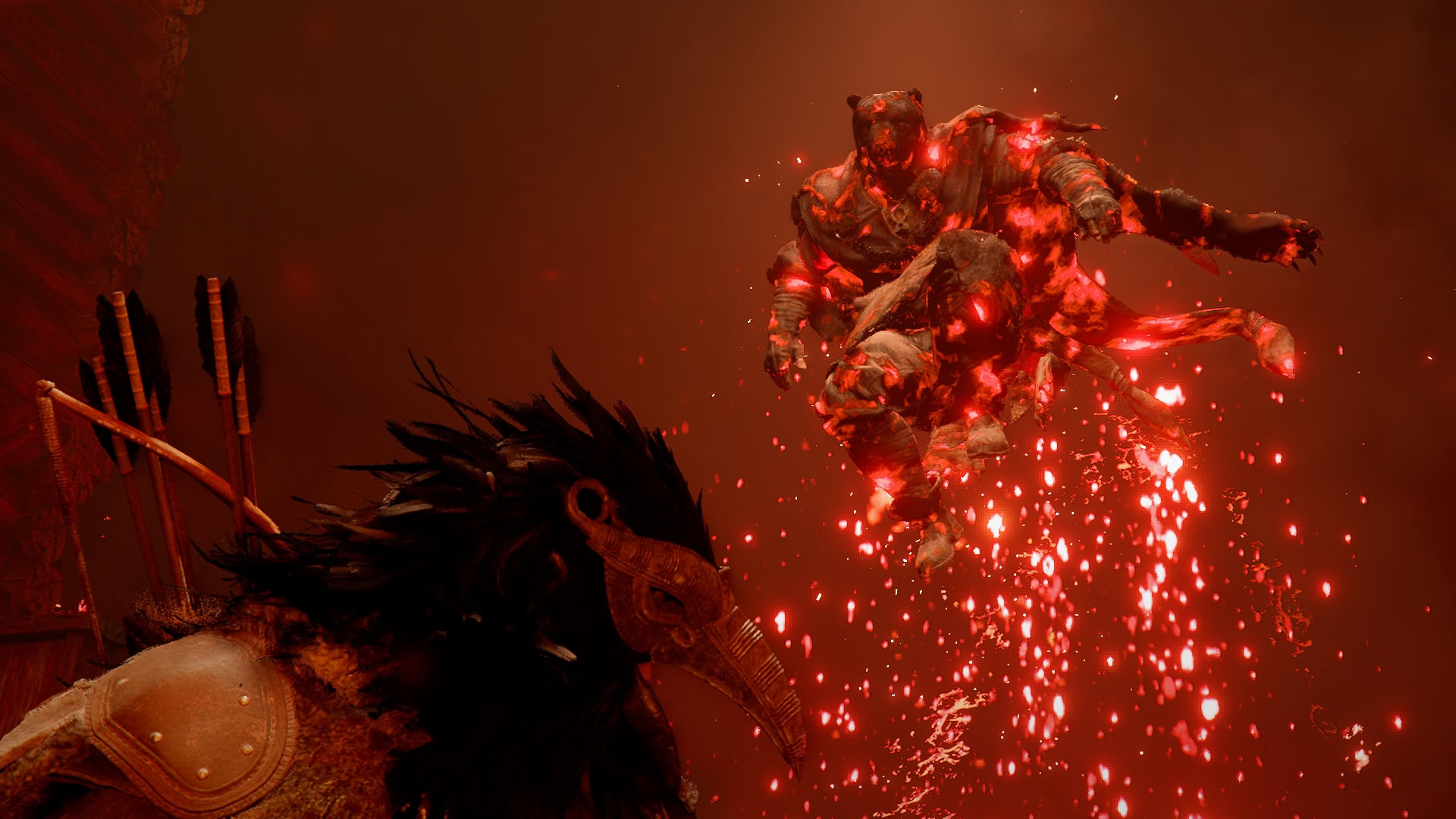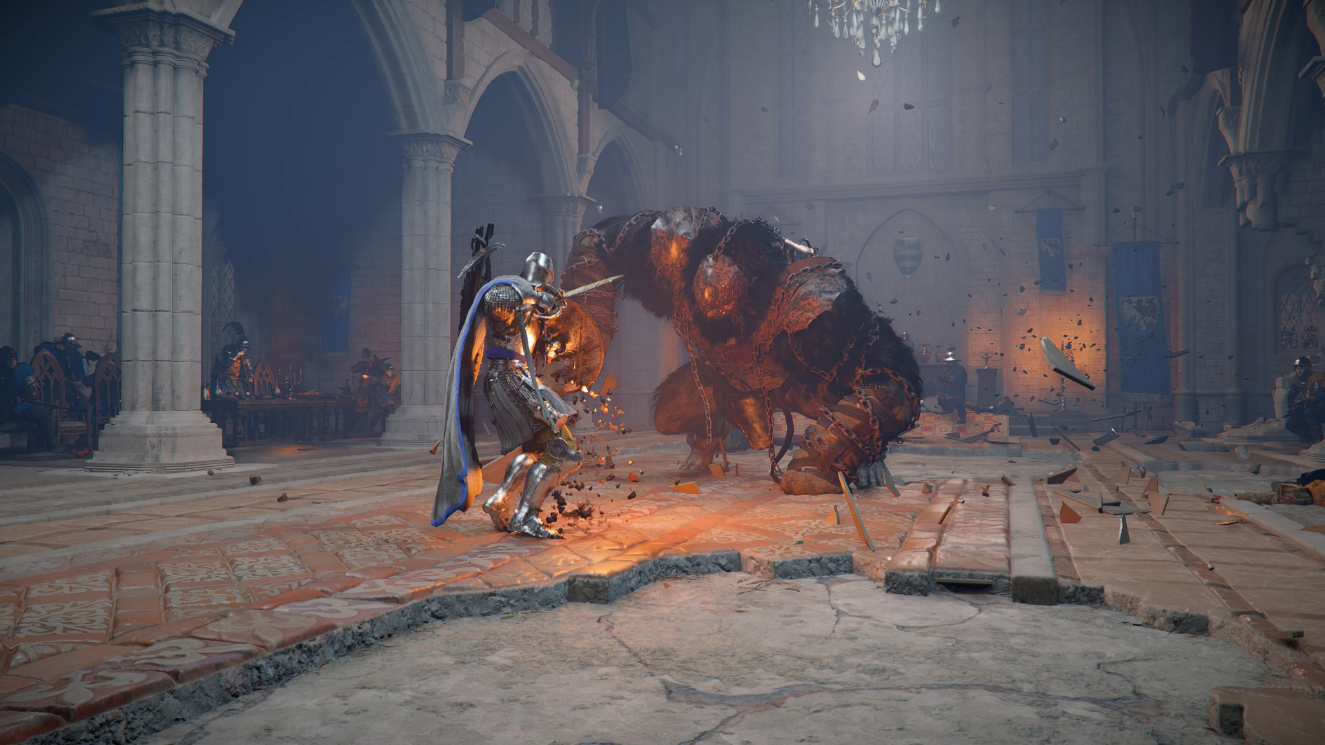Myurdin, revealed to be possessed by Umbra, a god manifested from the dark desires of people’s hearts, will use attacks from many of the bosses, including but not limited to: Myurdin’s Groundsurge, Hexe Marie’s Crowstorm, the Spirit Knights of the Cursed Knight, among others.
