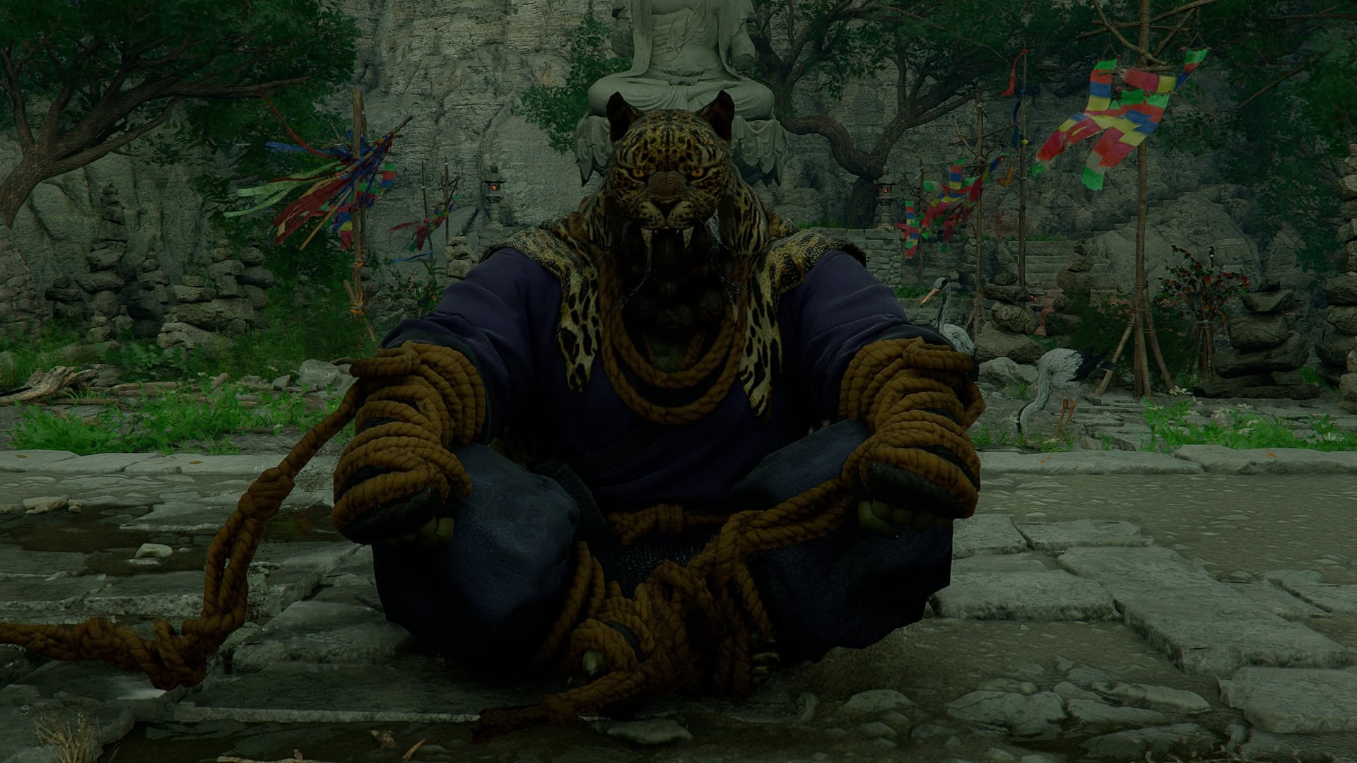 To start this quest, you’ll need to head to Jijeong Temple, located in the Serpent Marsh. On arriving, you’ll need to speak with the Chief Monk here, and he’ll request that you visit and fix any damage to the statues in the area.