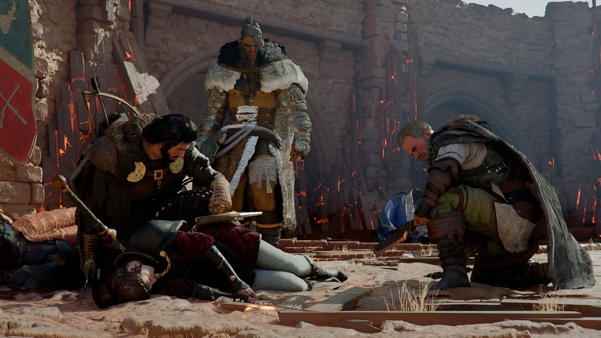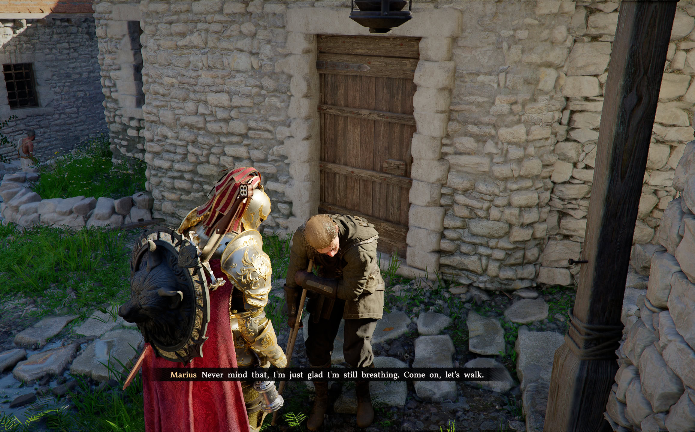 Upon your return to camp, you and Marius are greeted by Ross, another surviving Greymane who found his own way to the camp. Ross imparts the knowledge that there have been whispers of a Greymane that was taken to Halssius’ House of Healing.