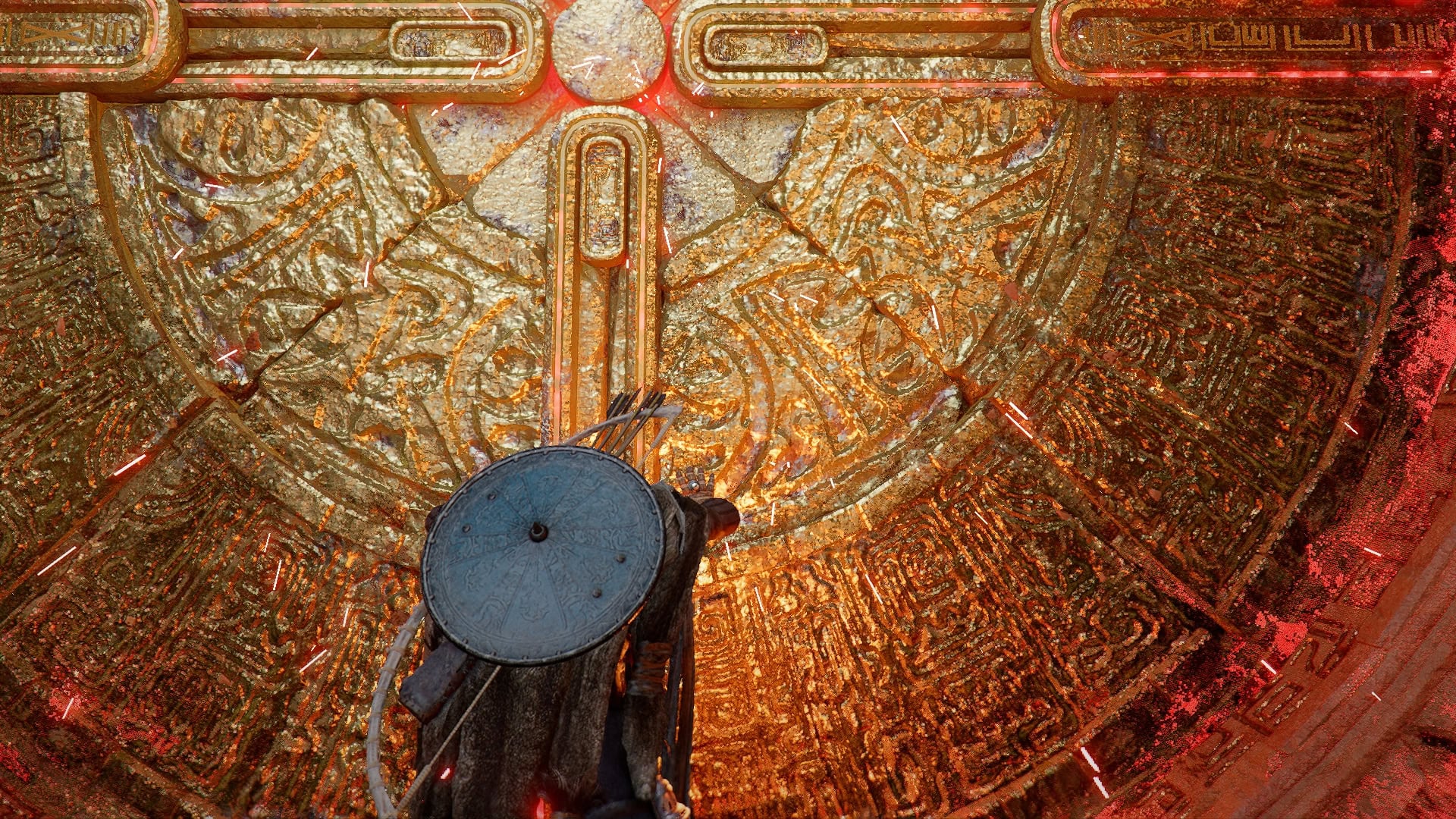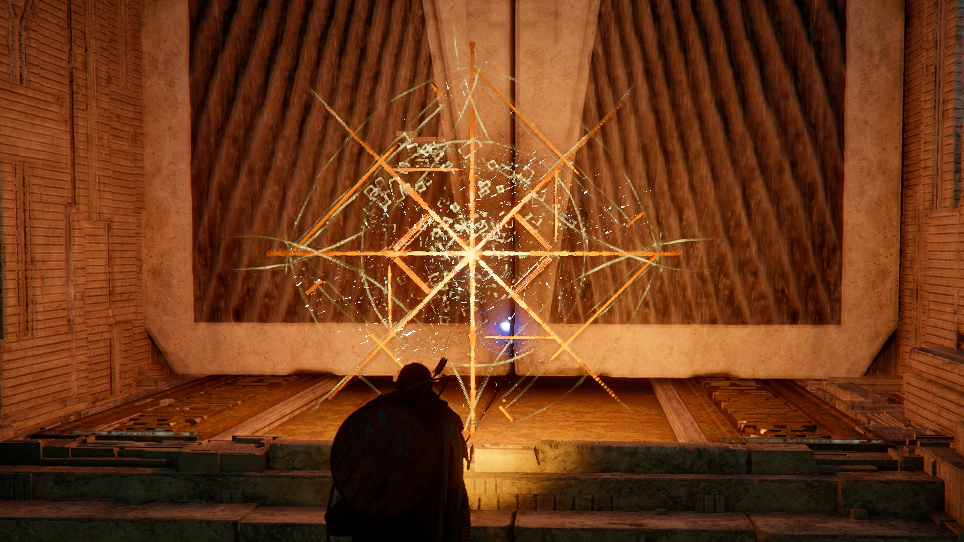 With all four of the previous sections are complete, it’s time to return to the Cloister of Enlightenment. You’ll be called to the back of the cloister, where you’ll need to press on three doors until they turn gold and open.
