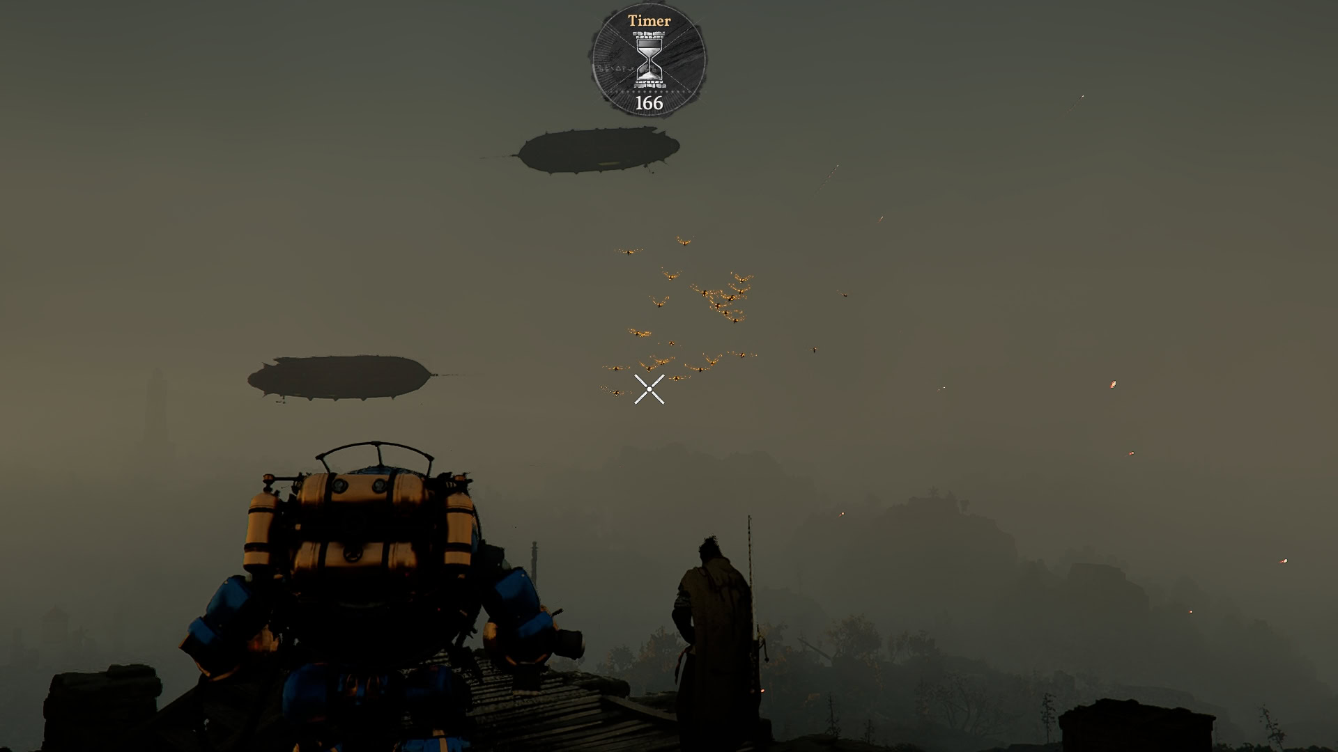 With the power plant defended, you’ll need to operate the giant anti-air cannon and shoot down two galleons. Upon the second being destroyed, an unknown object crashes to the ground from it, and you’re tasked to investigate.