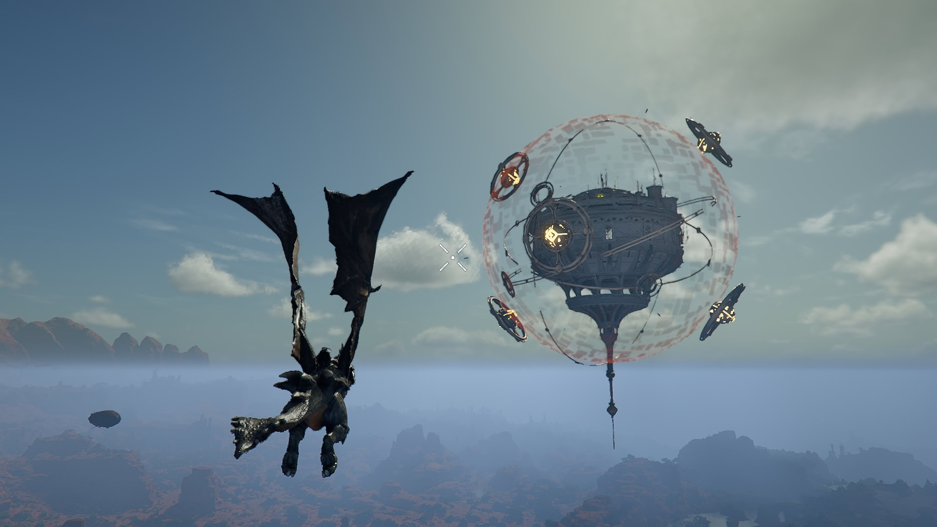 With Blackstar’s help, we’ll now be able to assault Flying Fortress Orbian. After flying towards the fortress, there will be cores on the barrier around it that you’ll need to hit with fireballs from Blackstar. After three hits on each of the six cores, you’ll hop off Blackstar and land on the lower level of the fortress.