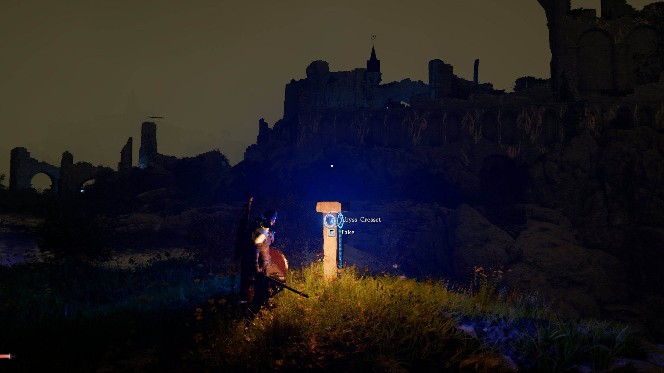You can unlock an Abyss Cresset after solving the puzzle at Wriggling Hill Ruins, east of the Sanctum of Mortification, north of the Golden Plains. To solve the puzzle, drain the water by using Nature’s Snare on the machine and light all of the torches.