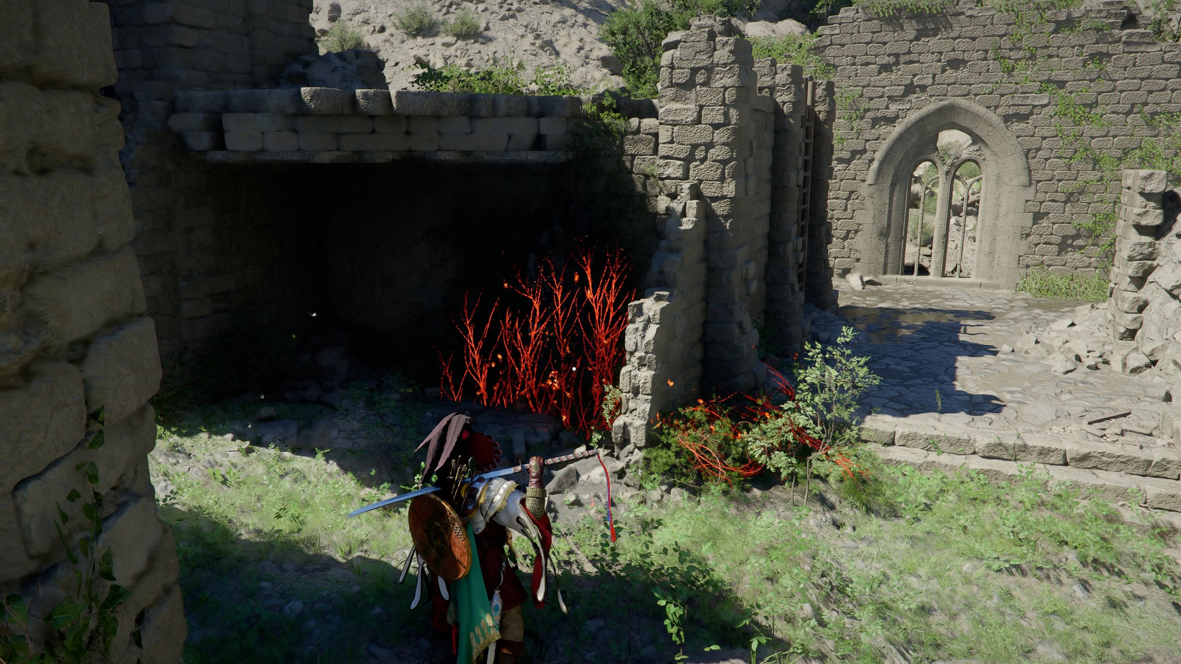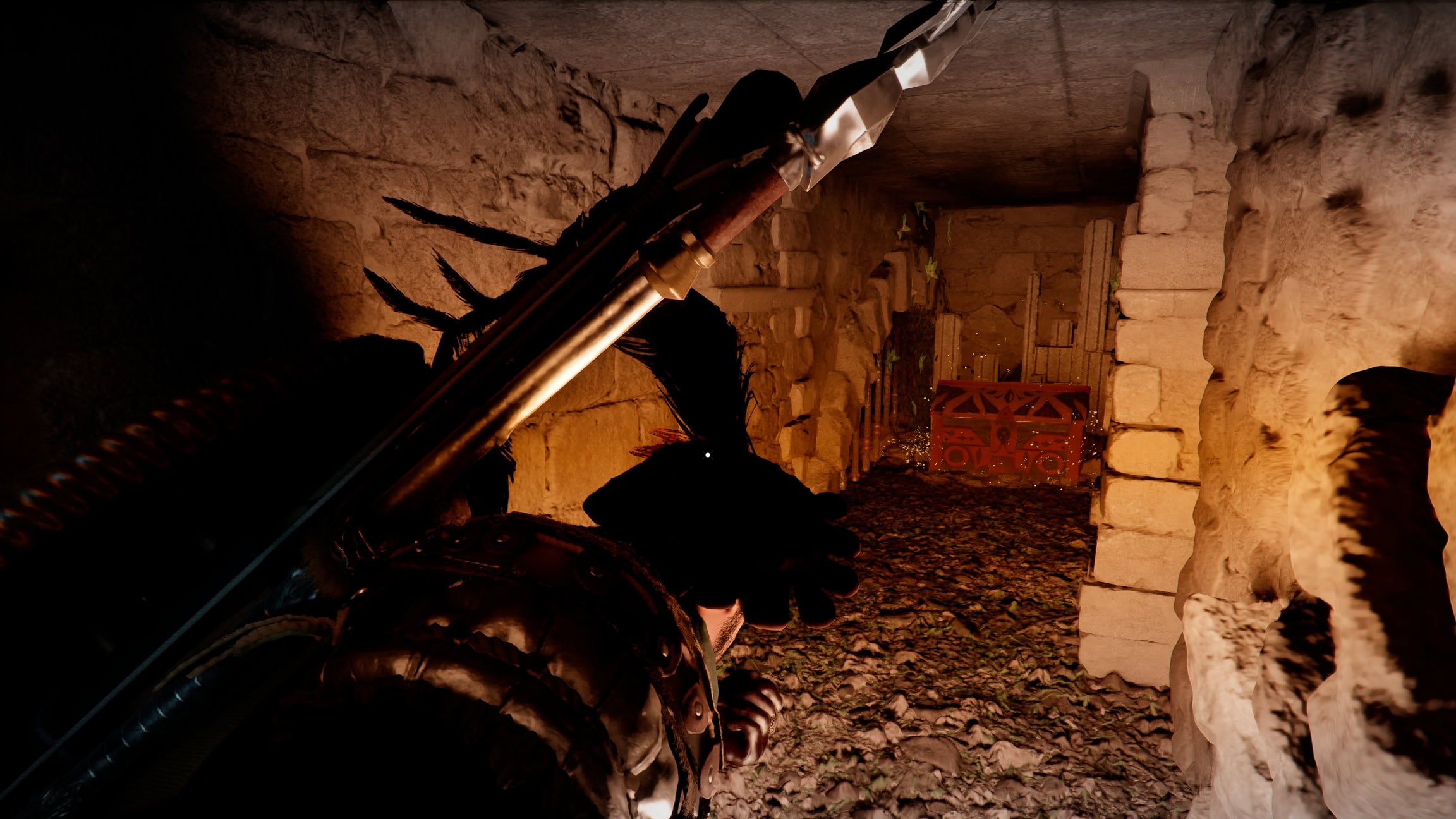 The entrance to the crawlspace is beneath a weird outcropping you’ll have to crouch to climb up into. It’s a little bit of a maze and there are some spike traps.
