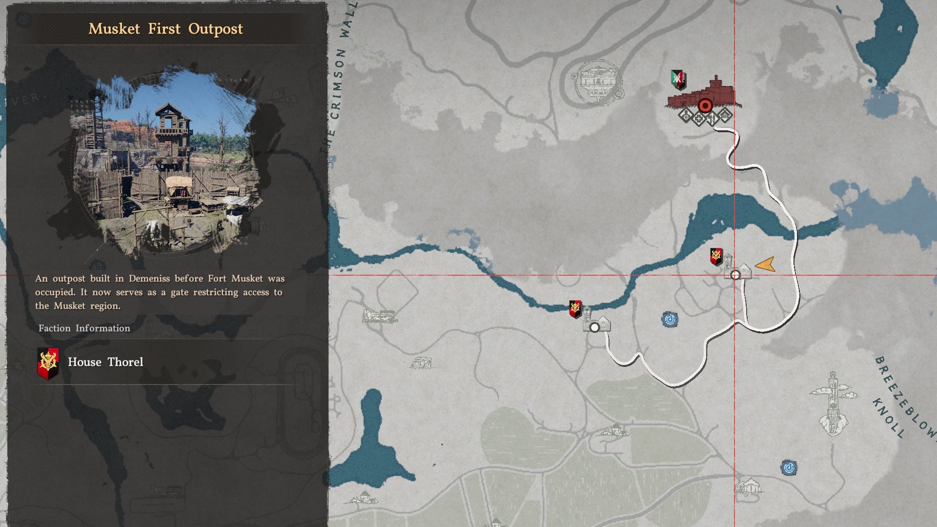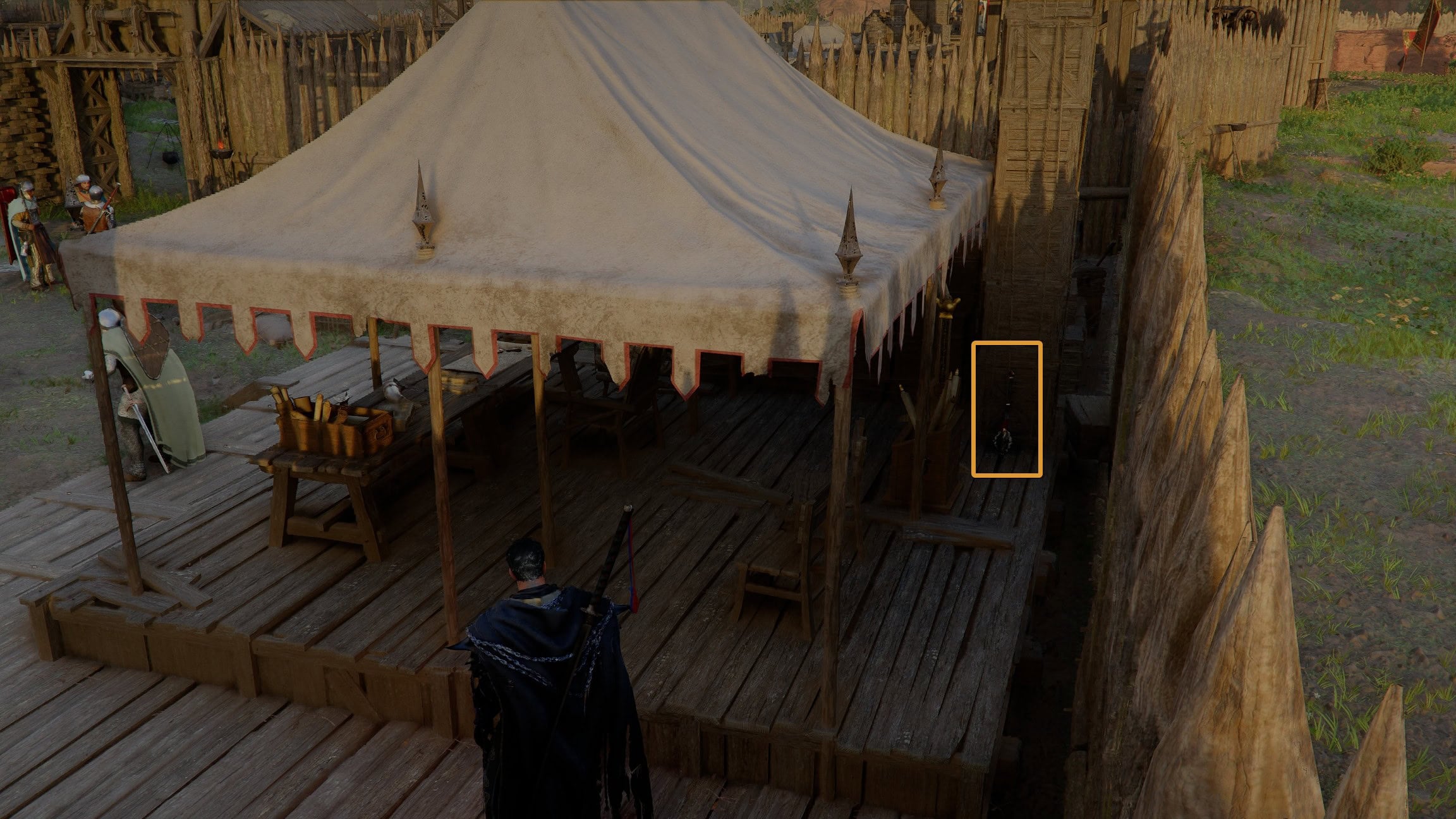 You can steal the Mace of Resolve from the Musket First Outpost in the northeast corner of Demeniss. It’s leaning up against a stack of crates between a map and the fence on the east side of the outpost.
